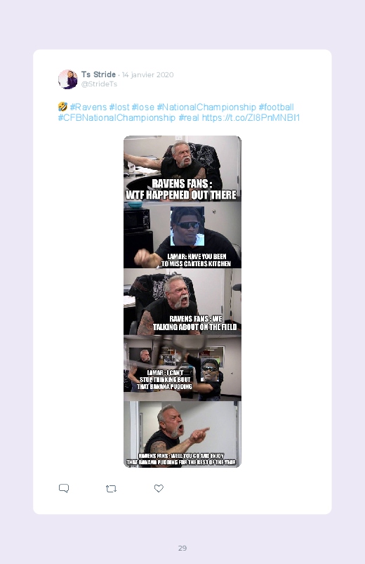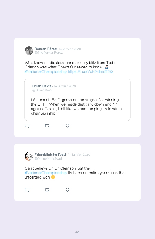 College Football Championship, the final of the University American Football Championship is over! Discover the winners and the reactions of Internet users in this Twitter book!