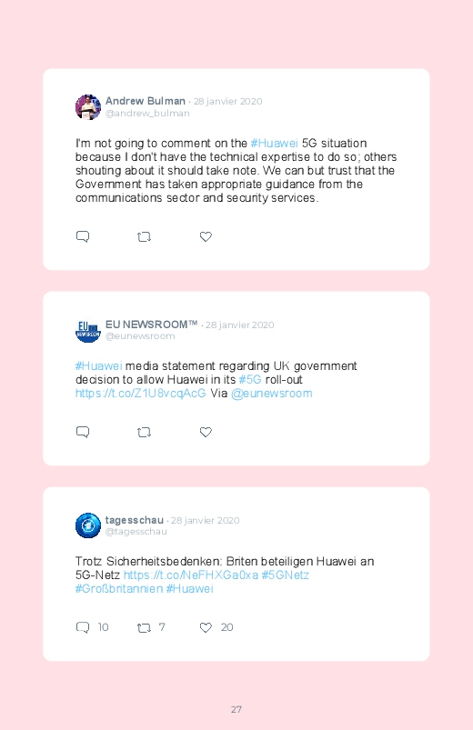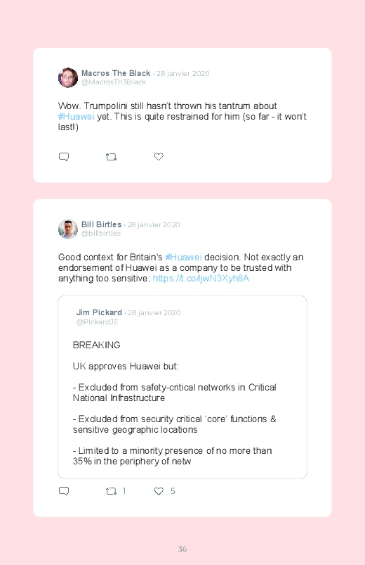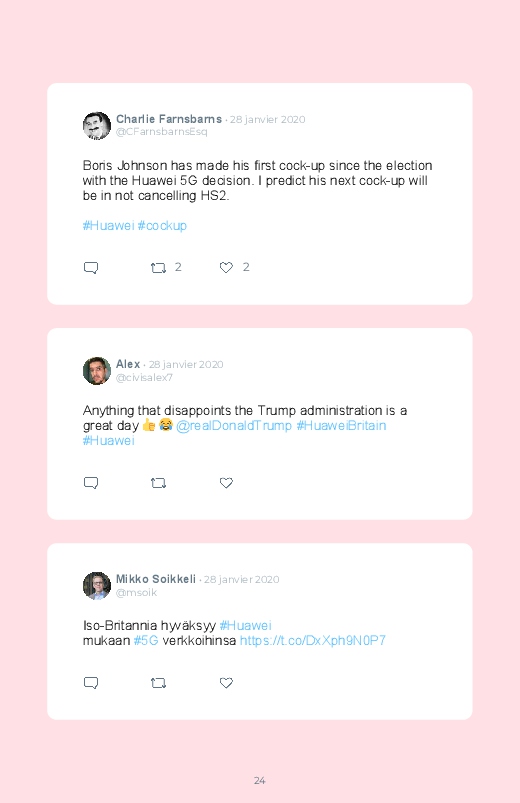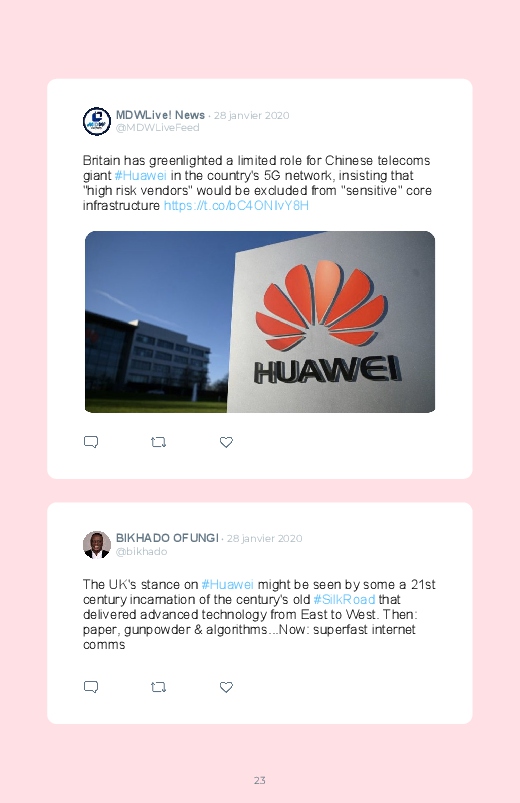 Britain will not ban Huawei’s 5G network equipment, a decision opposed to the American campaign against the Chinese technology giant! Follow the debate of Internet users in this Twitter book!