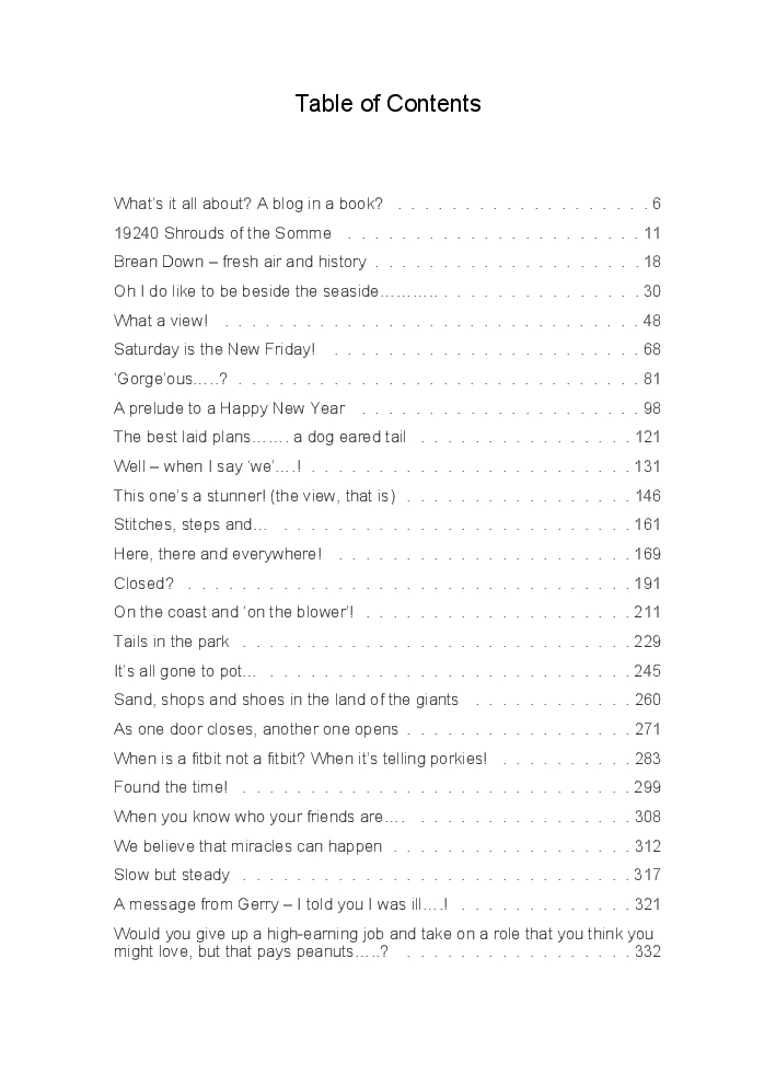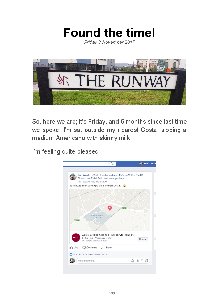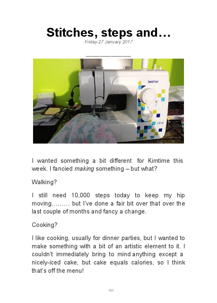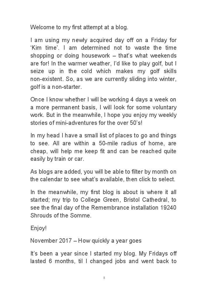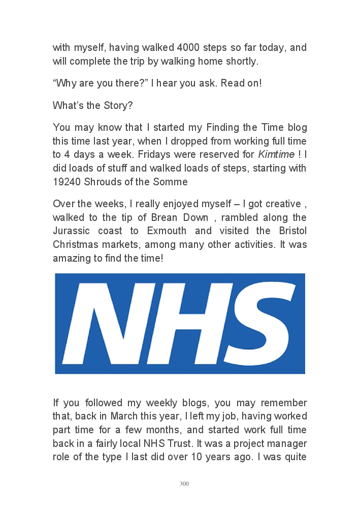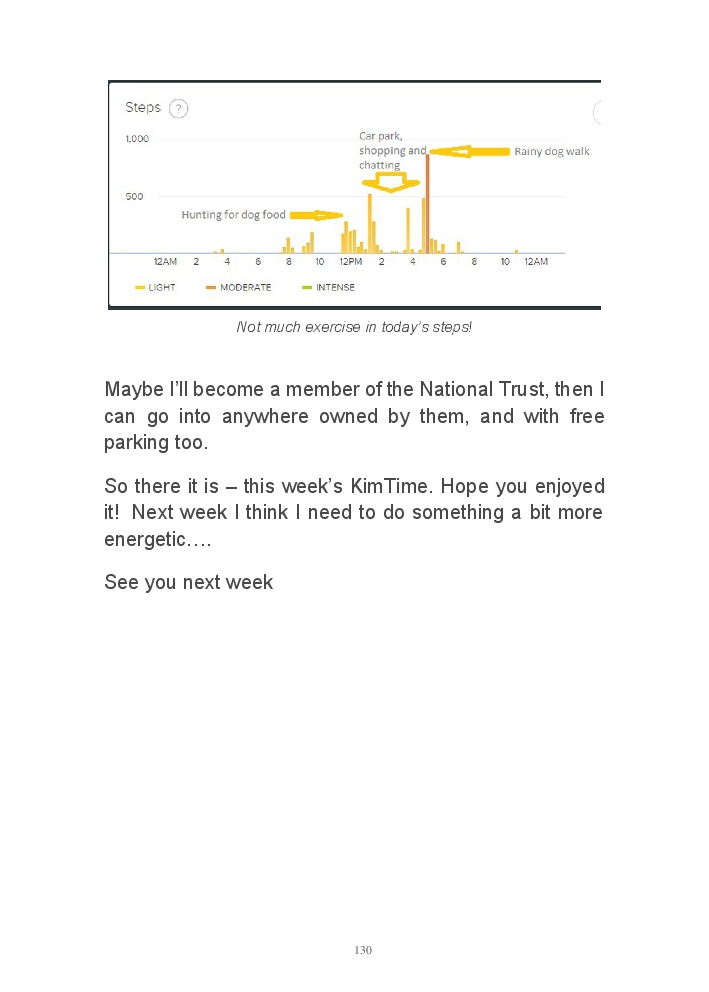 This book records the complete Kimtime blog, including photos as well as a light and friendly narrative. There is a nod to fitness with a weekly step count of her weekly travels around the Somerset area.