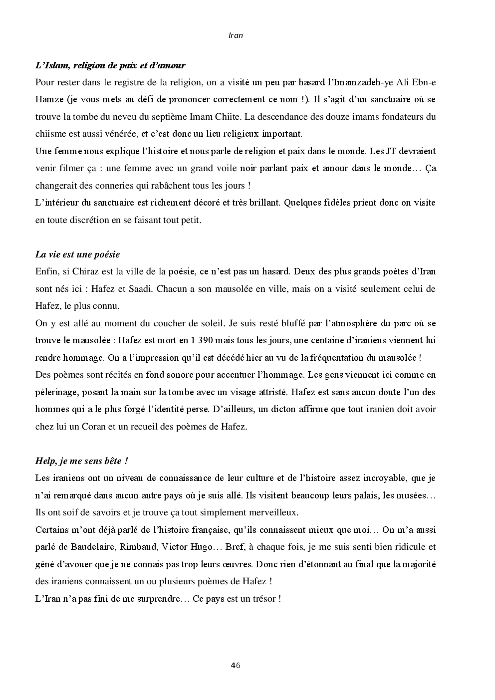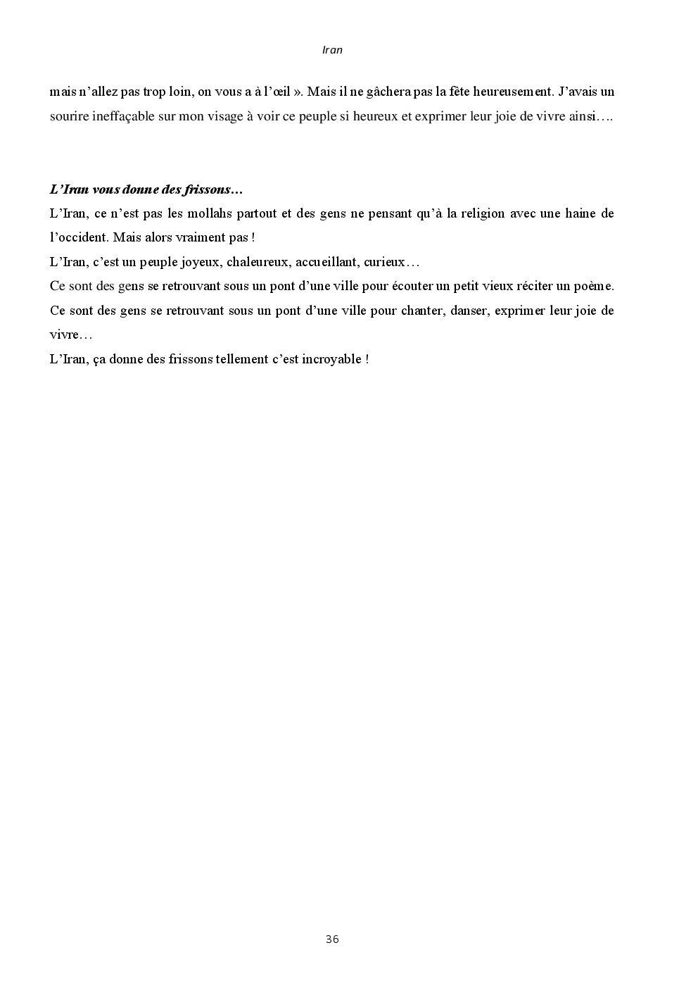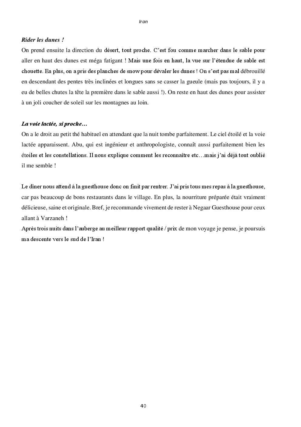 J'y ai découvert deux pays somptueux et extraordinaires : l'Iran et la Jordanie. Mais surtout, un accueil unique et loin des clichés que l'on peut avoir. Ça restera une région du monde spéciale, où j'ai hâte de retourner vagabonder.