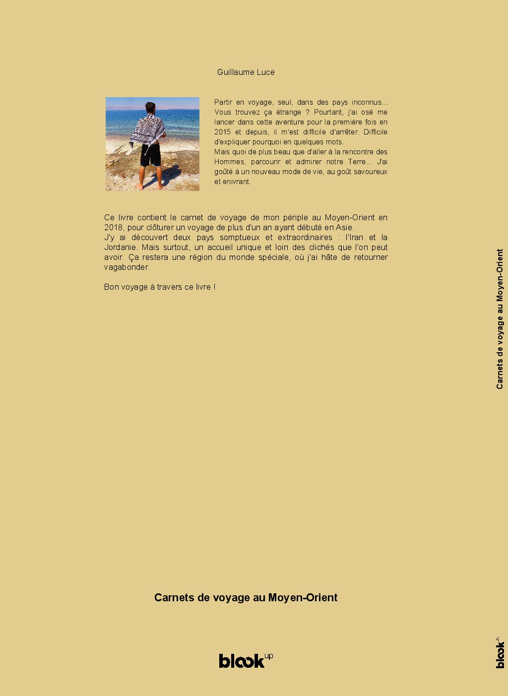 Ce livre contient le carnet de voyage de mon périple au Moyen-Orient en 2018, pour clôturer un voyage de plus d'un an ayant débuté en Asie.