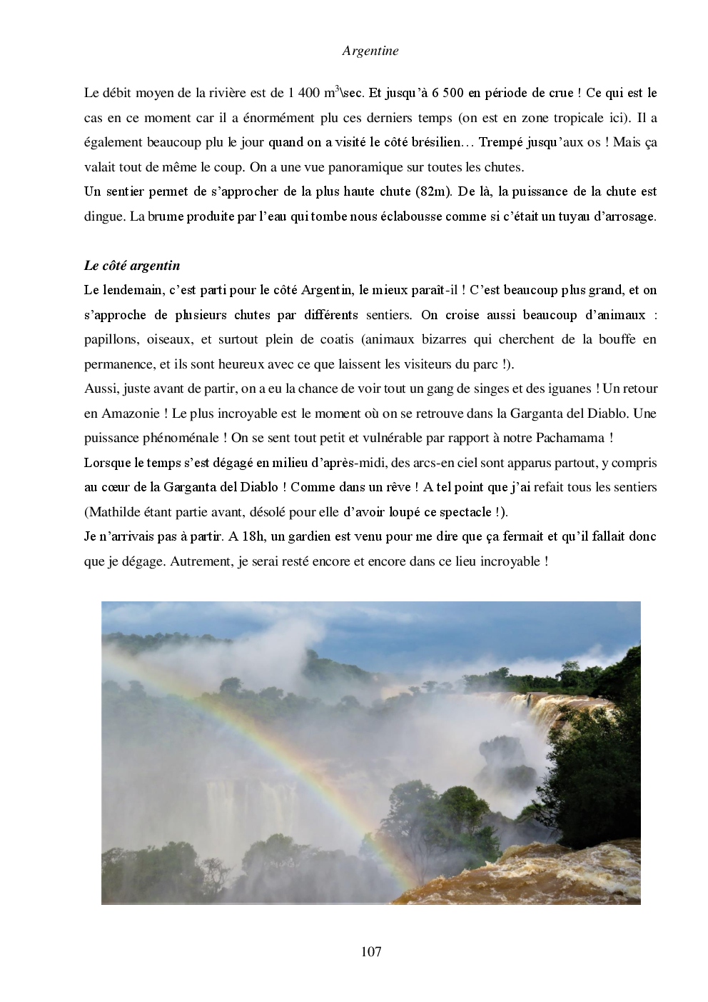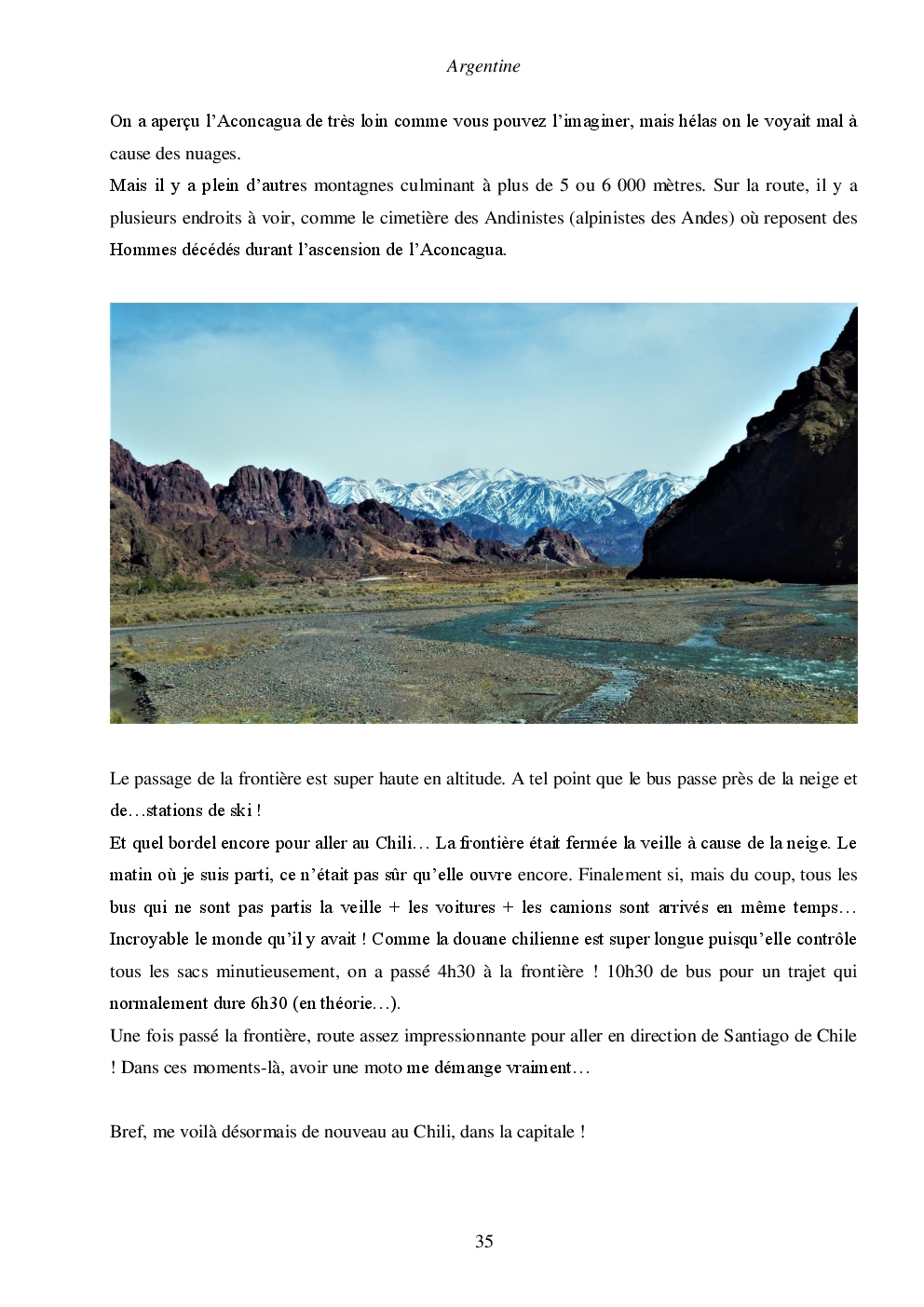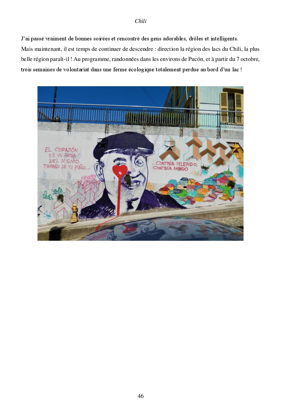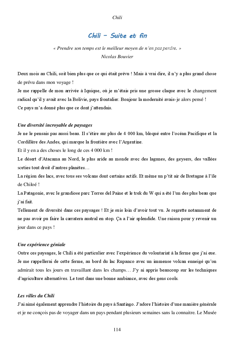 Dans ce livre se trouve la suite de mon voyage en Amérique du Sud : l'aventure continue ! Toujours entre mer et montagne, rencontre et partage, joie et galère... Le tout qui compose un souvenir inoubliable !