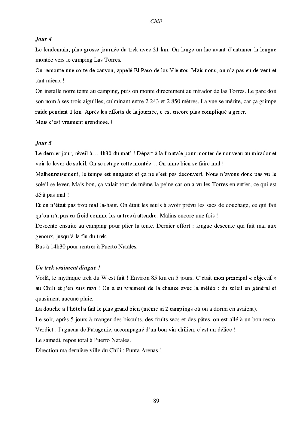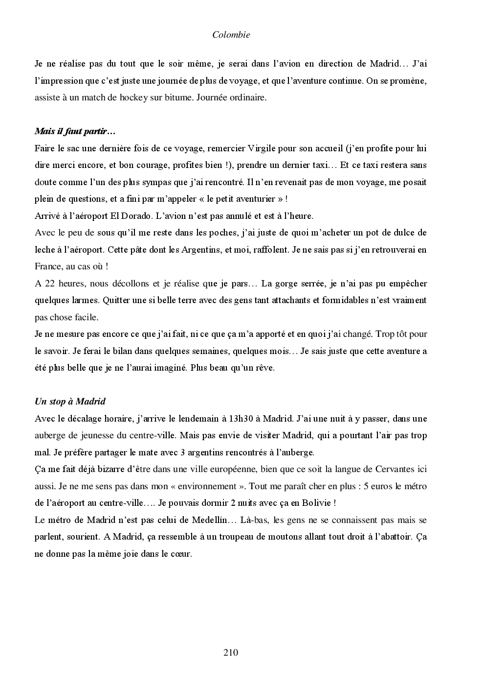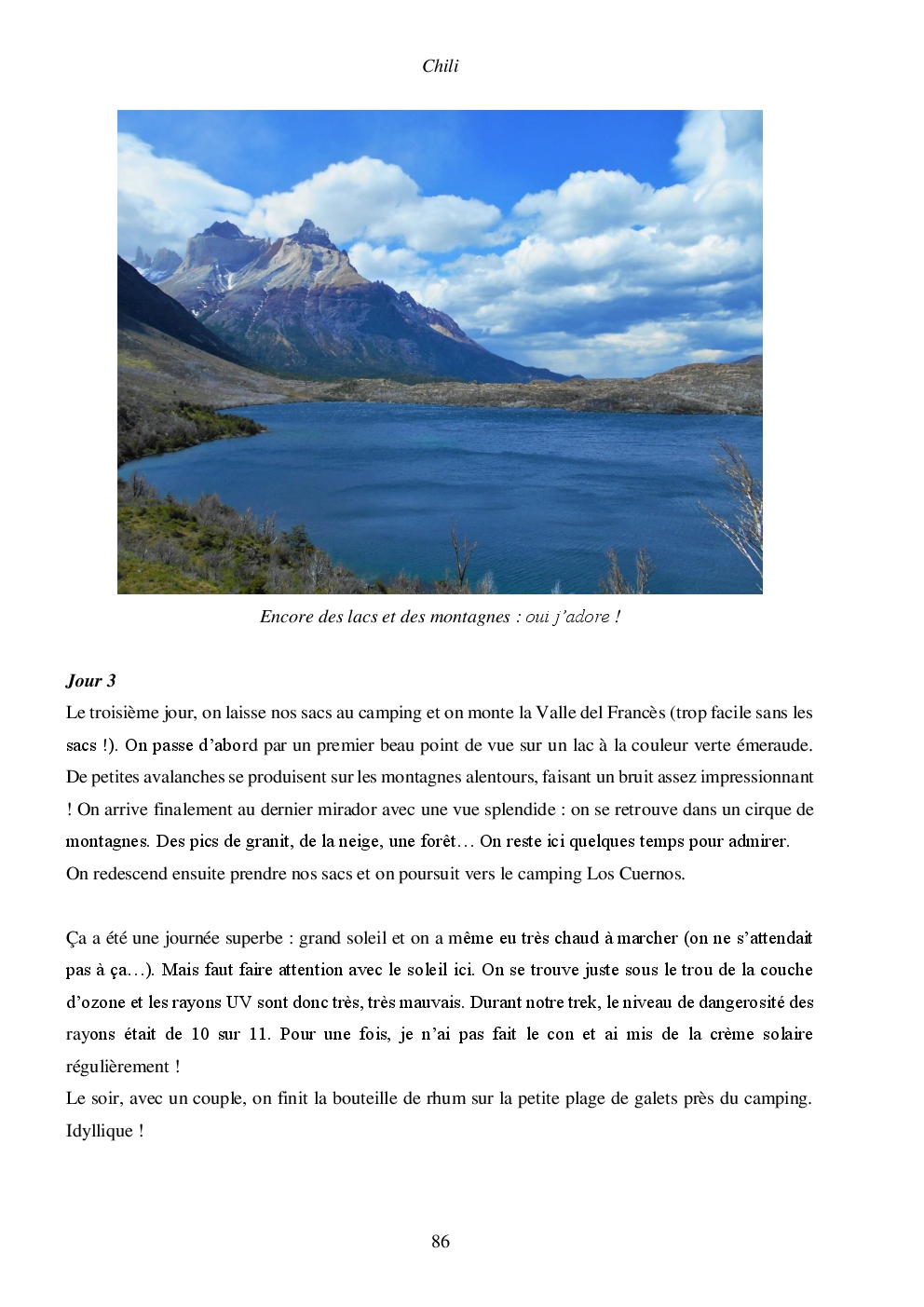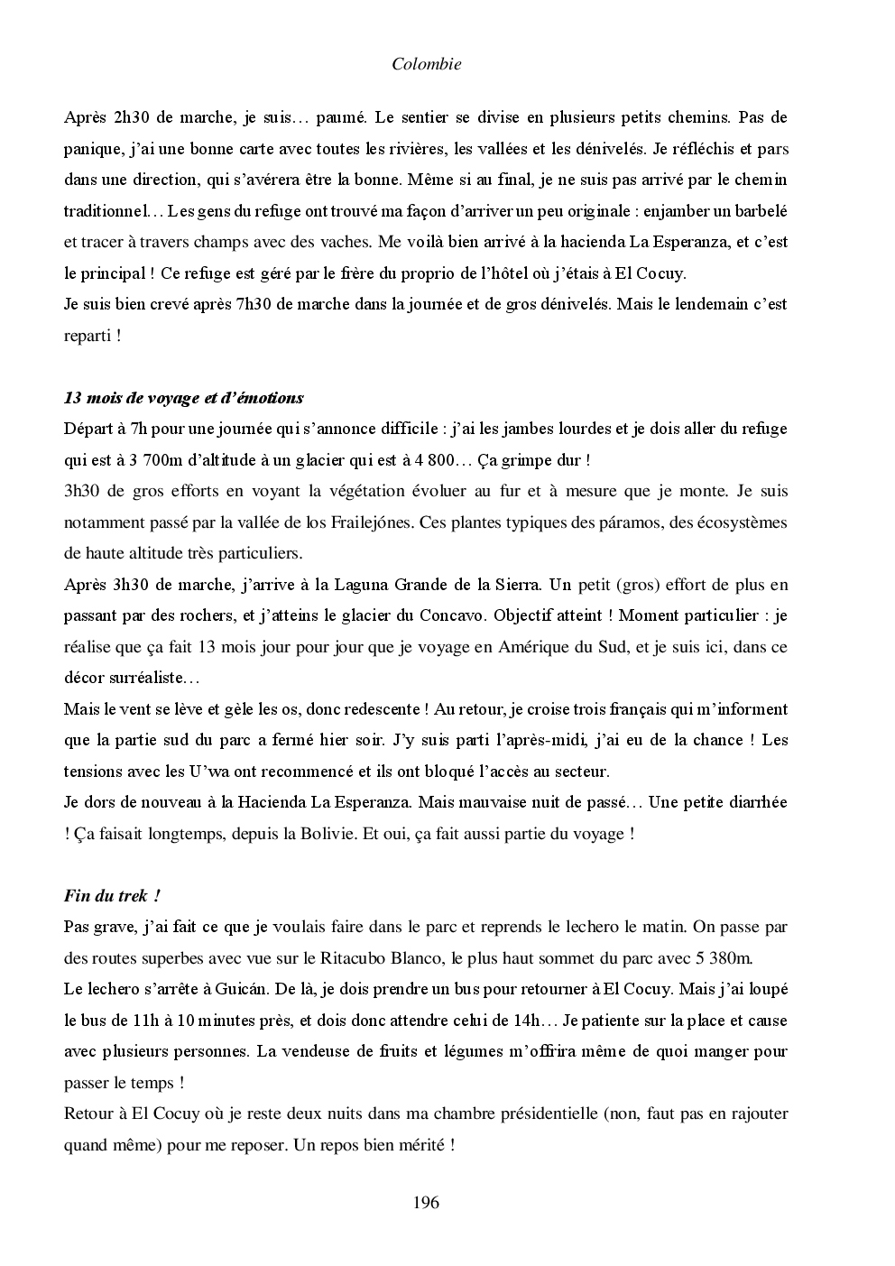 Dans ce livre se trouve la suite de mon voyage en Amérique du Sud : l'aventure continue ! Toujours entre mer et montagne, rencontre et partage, joie et galère... Le tout qui compose un souvenir inoubliable !