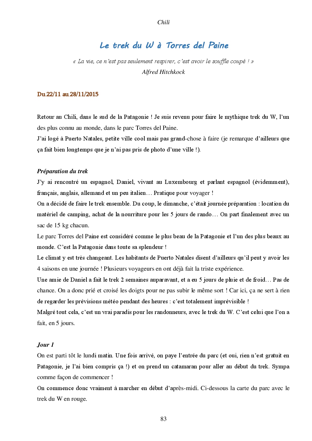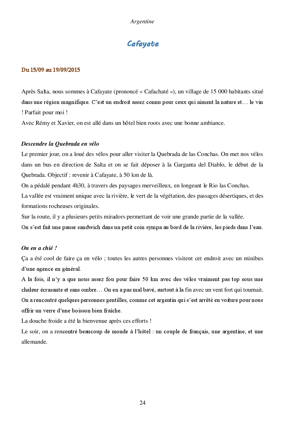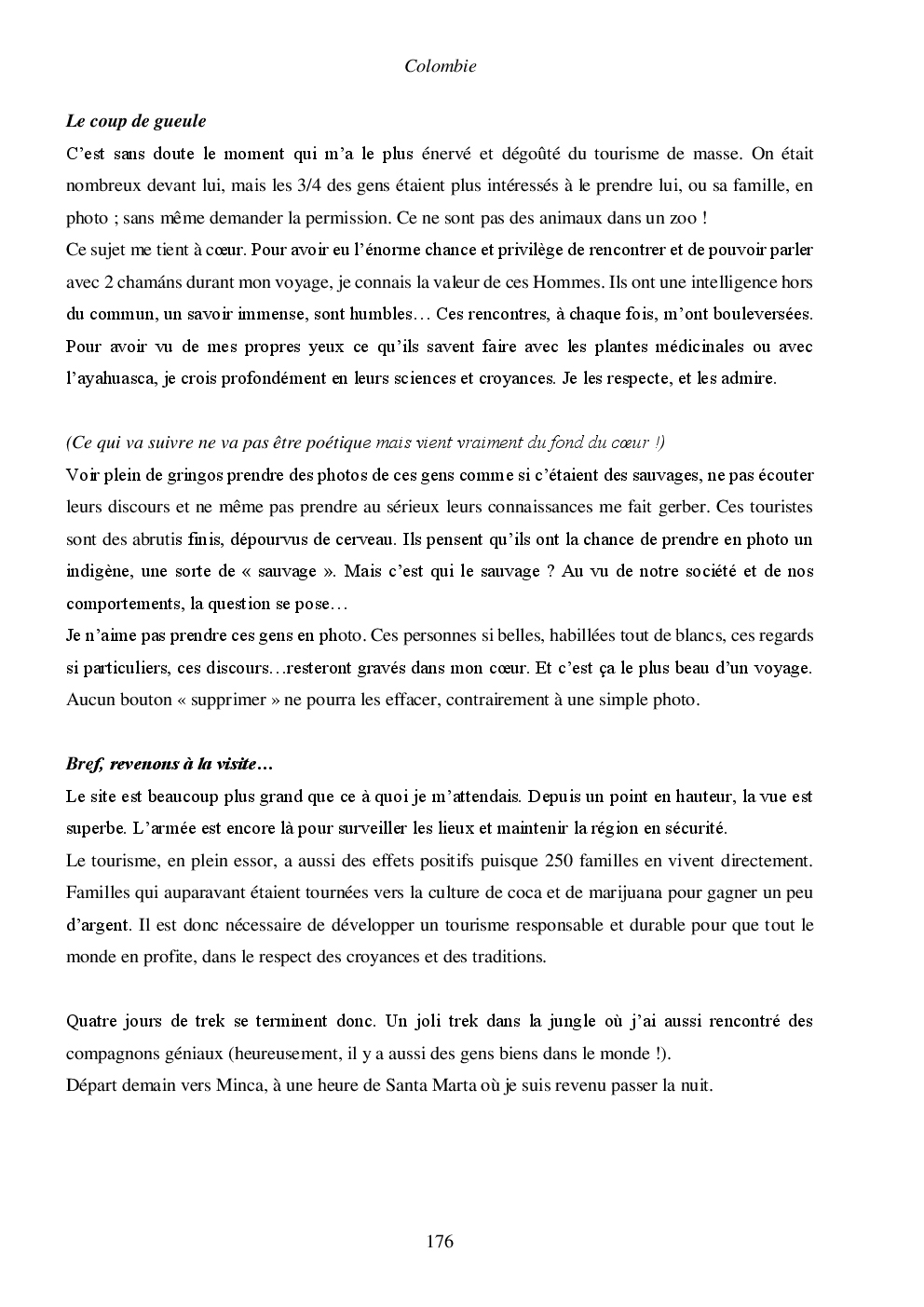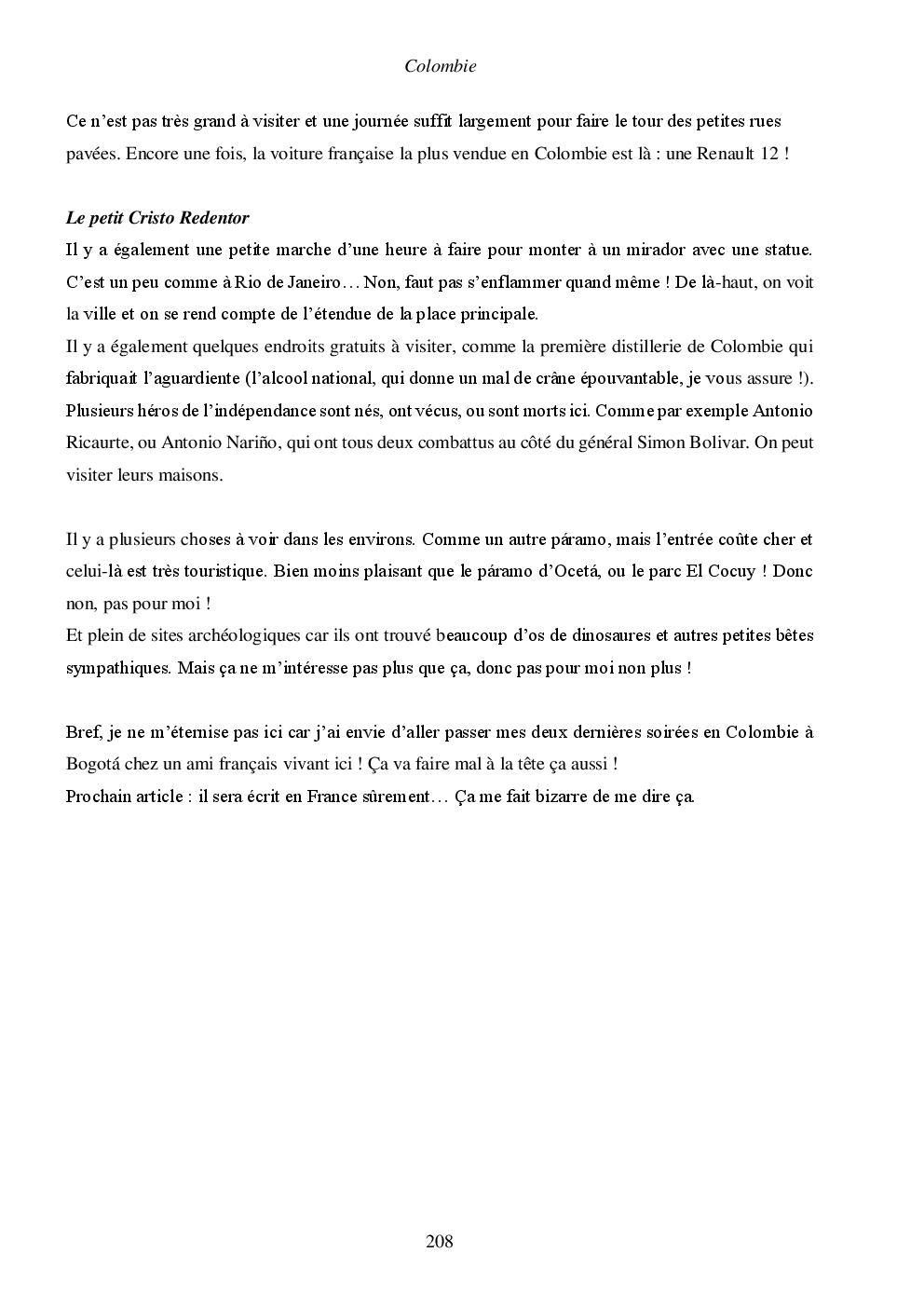 Dans ce livre se trouve la suite de mon voyage en Amérique du Sud : l'aventure continue ! Toujours entre mer et montagne, rencontre et partage, joie et galère... Le tout qui compose un souvenir inoubliable !