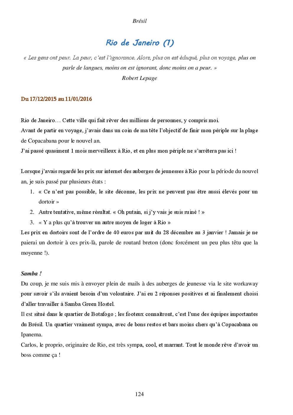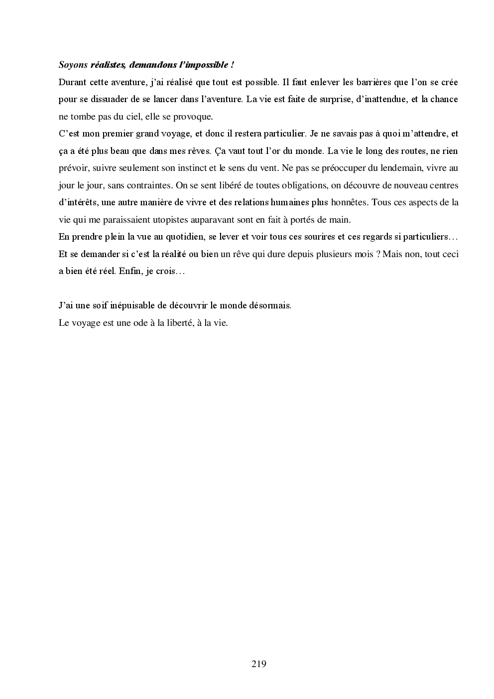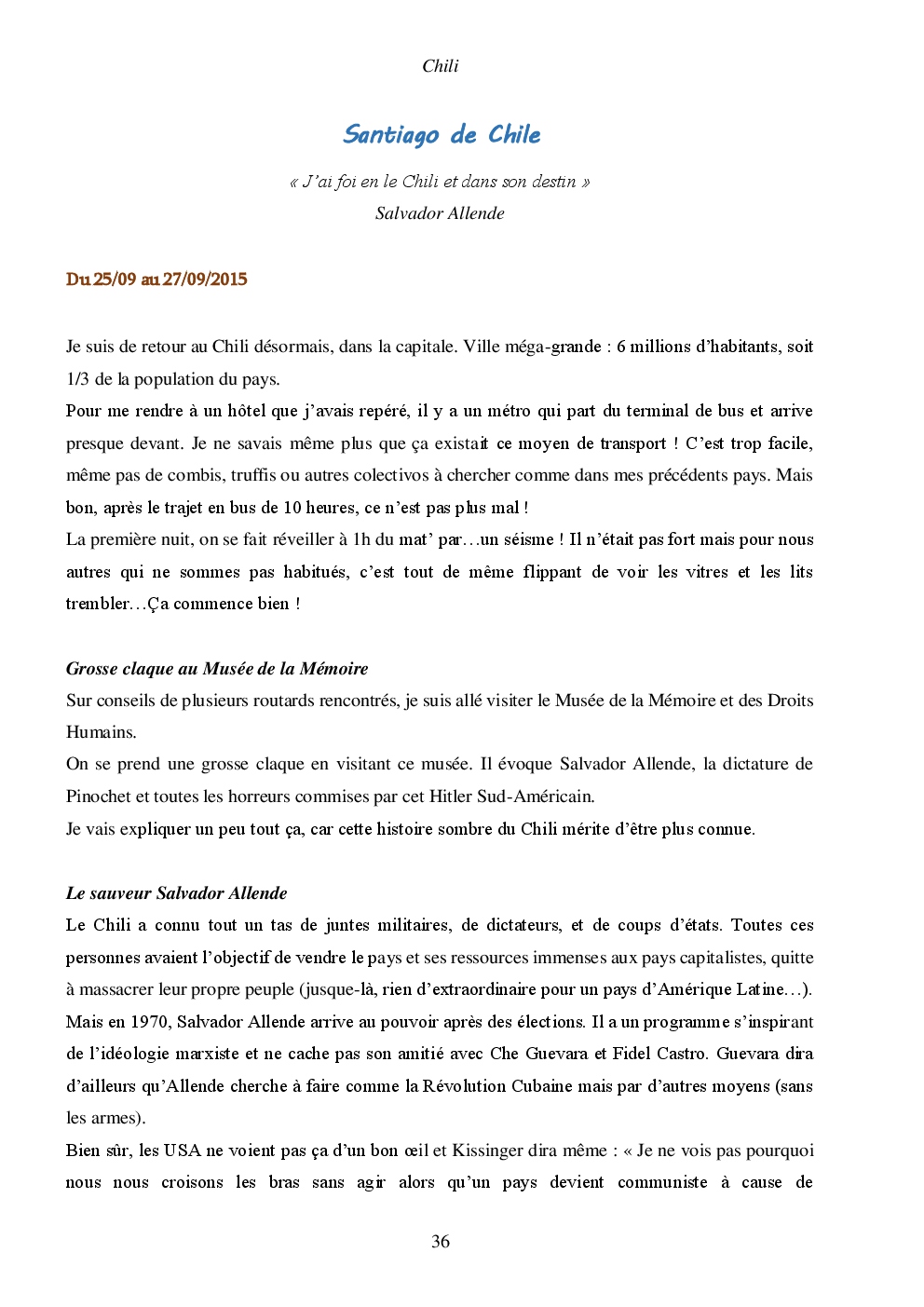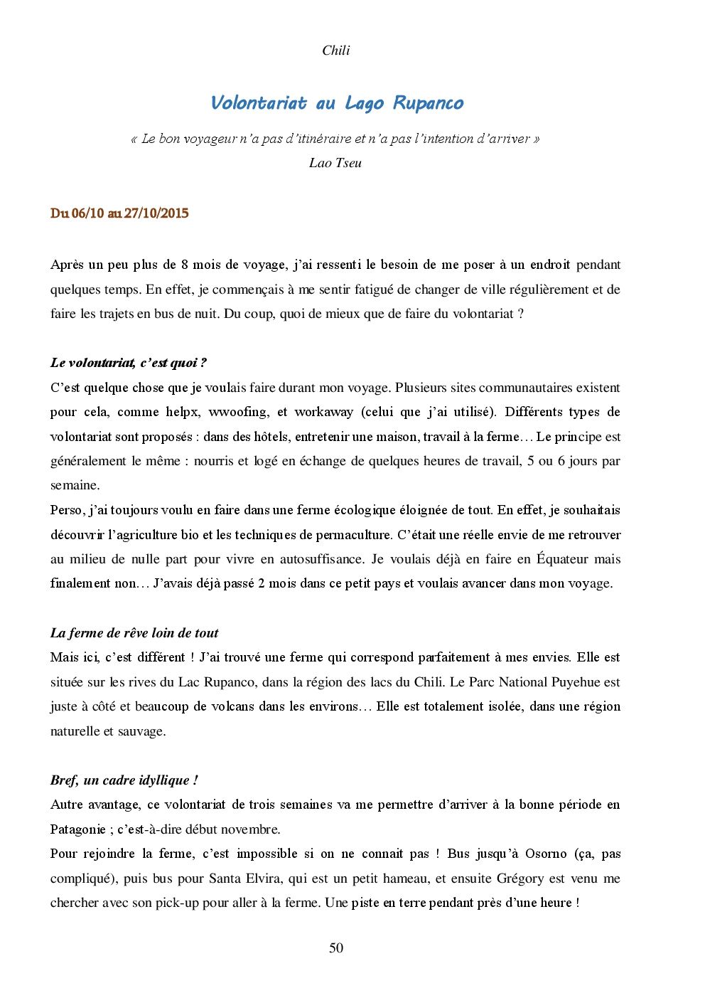 Dans ce livre se trouve la suite de mon voyage en Amérique du Sud : l'aventure continue ! Toujours entre mer et montagne, rencontre et partage, joie et galère... Le tout qui compose un souvenir inoubliable !