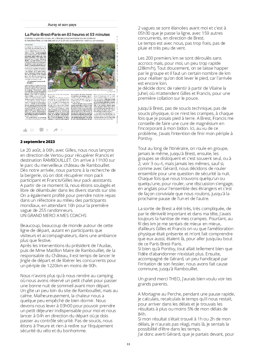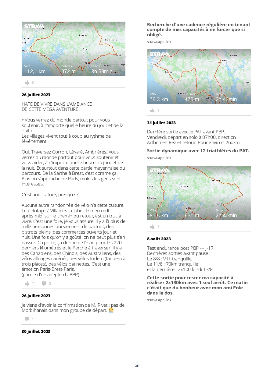 Le lancement des concurrents est digne d'un grand départ du tour. De plus, l'implication des riverains tout au long de l'itinéraire, est extraordinaire ! Les accueils aux contrôles et les habitants offrants des rafraîchissements,++, nous permettent de réussir un PBP, qui nous paraît, au prima-bord, insurmontable.