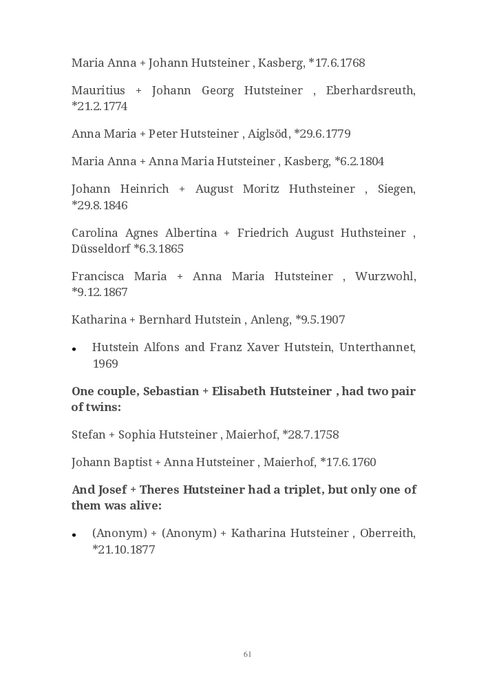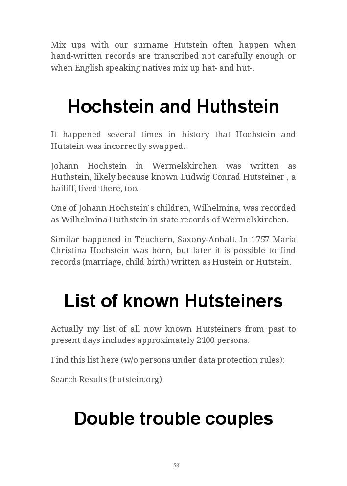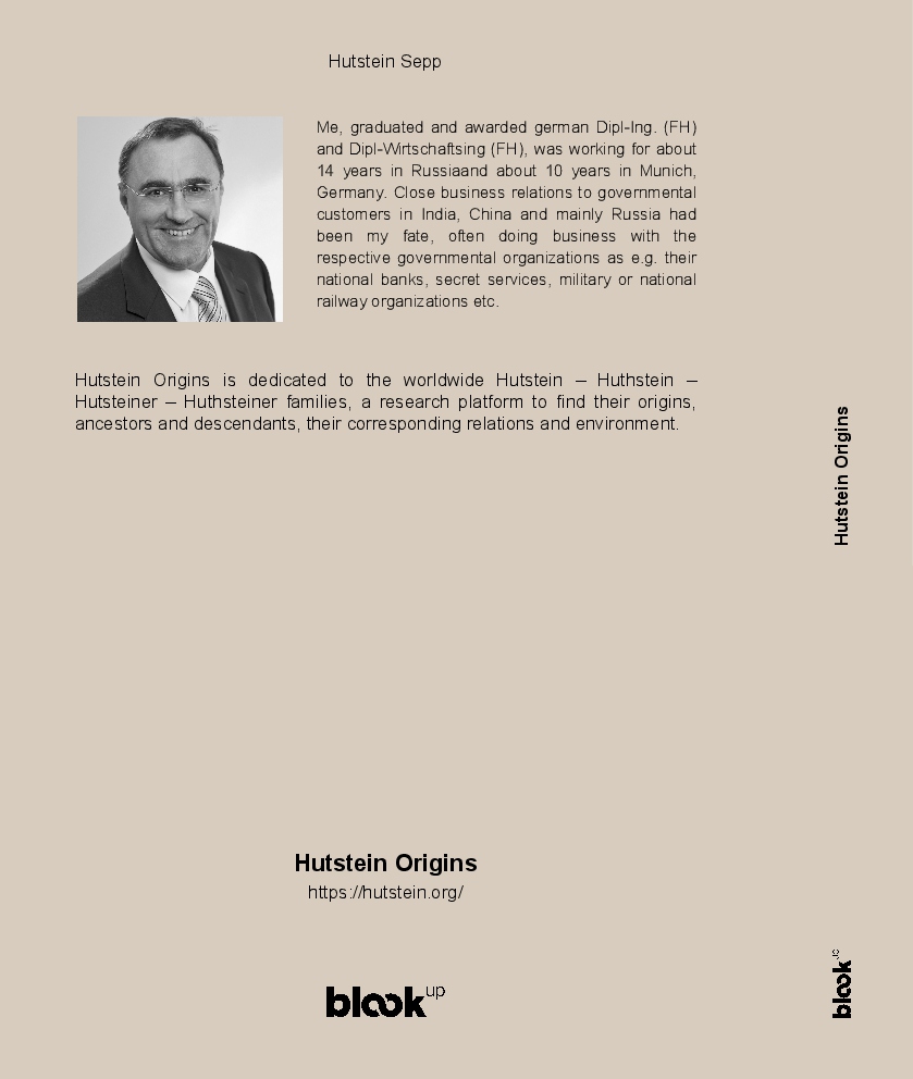 Hutstein Origins is dedicated to the worldwide Hutstein – Huthstein – Hutsteiner – Huthsteiner families, a research platform to find their origins, ancestors and descendants, their corresponding relations and environment.
