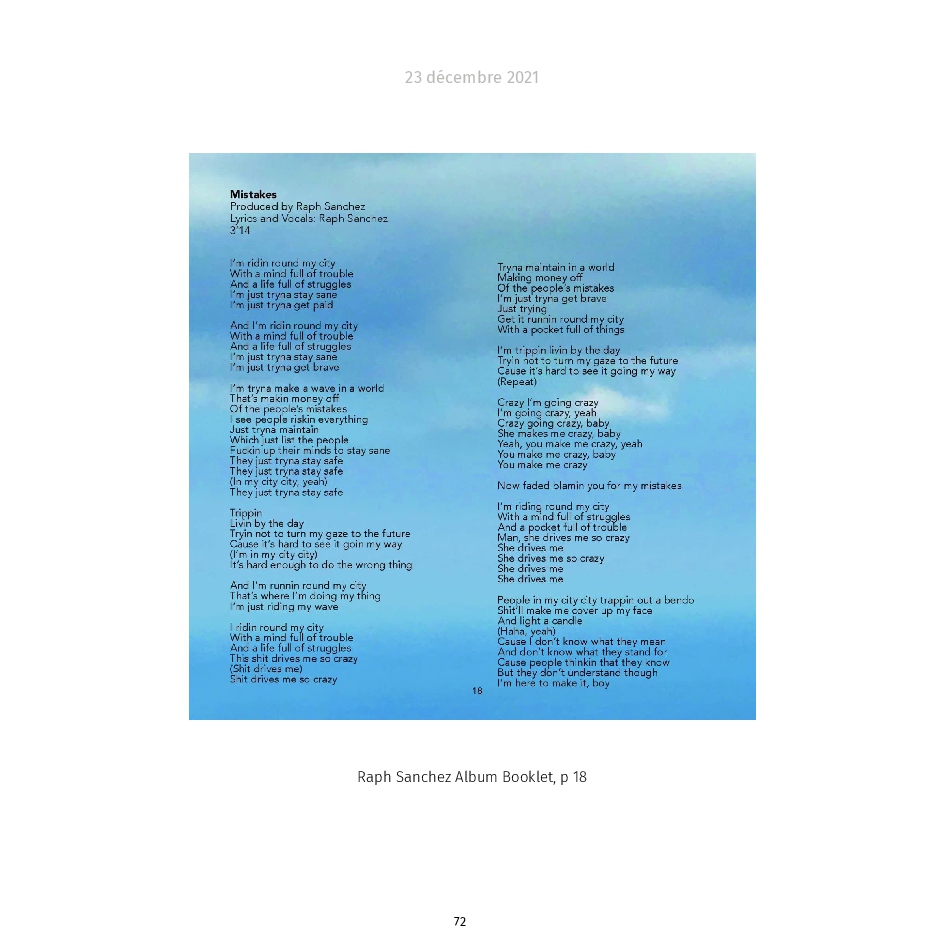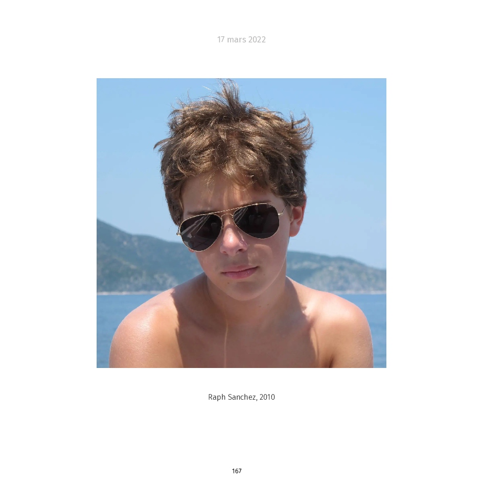 Ce livre réunit toutes les images publiées par Marc Sanchez entre le 29 novembre 2021 et le 21 mars 2022 sur le compte Instagram dédié à Raph Sanchez.