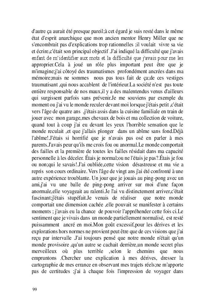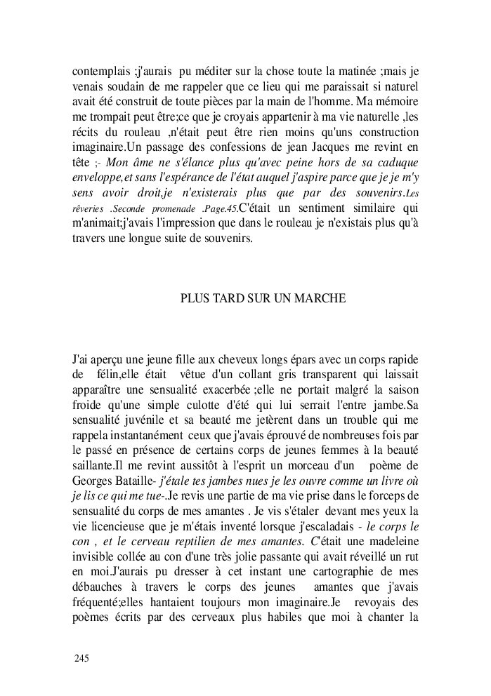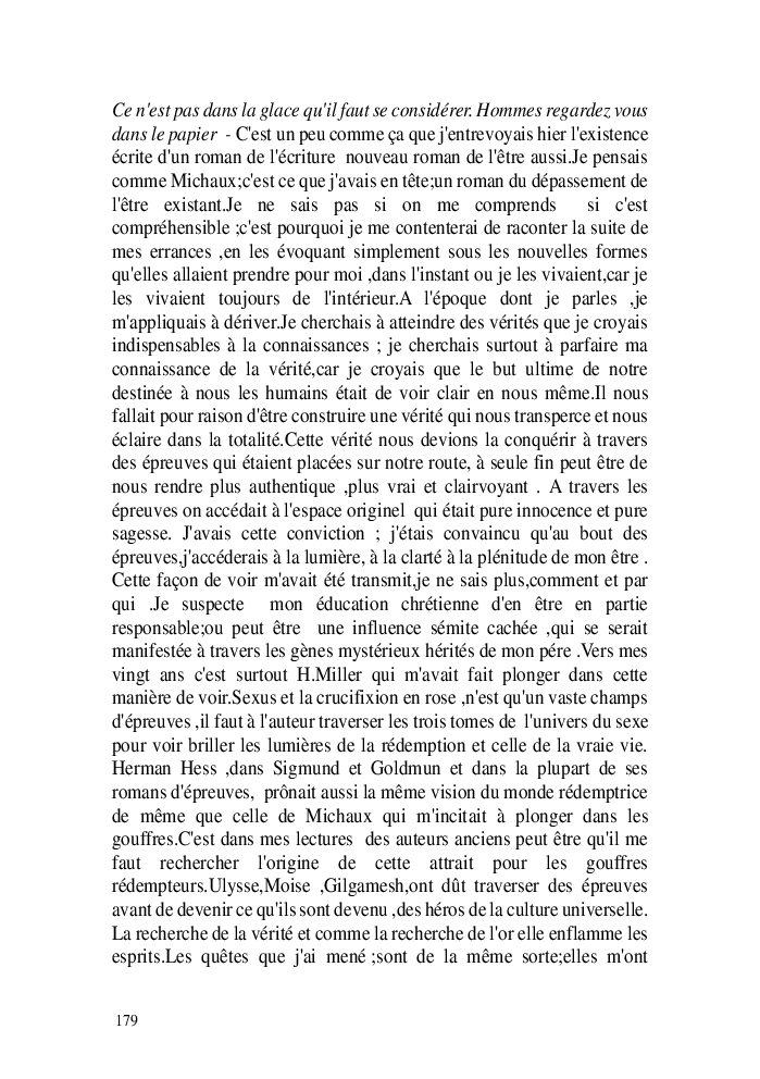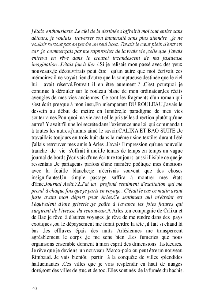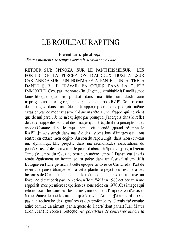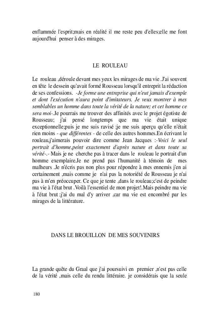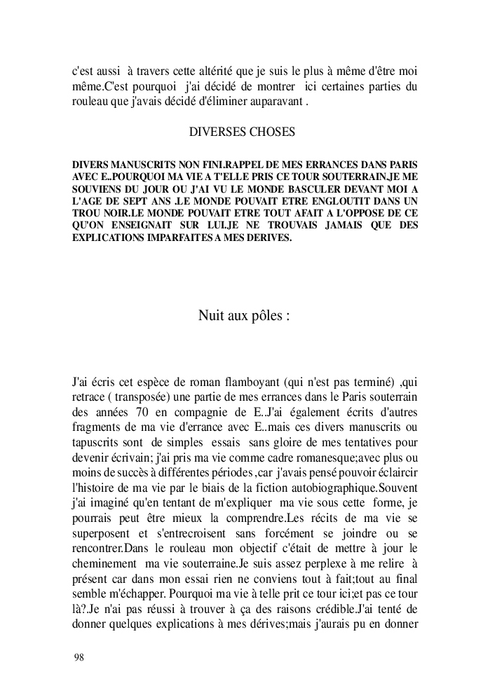 Cette nouvelle version du rouleau n'est nouvelle que pour moi qui connait les anciennes.J'ai écris différentes versions du rouleau durant vingt ans.Très récemment j'ai opéré des coupes et des transformation dans mon manuscrit et cela a donné un nouveau regard.Au départ le rouleau était une suite de récits qui étaient destinés a retracer mes vies alternatives avec un clin d'oeil prononcé en direction de Kérouac et de son fameux rouleau (on the road) . Mes récits ont bifurqués et ont pris un tour nouveau ma route c'est élargie;entre temps j'avais fait la rencontre d'Odysseus,et ma vie avait pris une autre direction