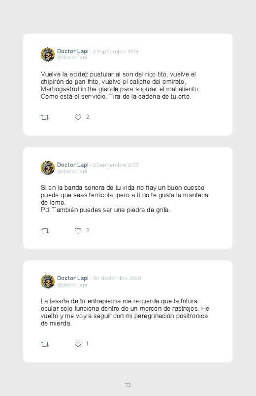 Doctor Lapi made the blook of their their Twitter account ! Support their creativity by buying their blook or create your own now on BlookUp!