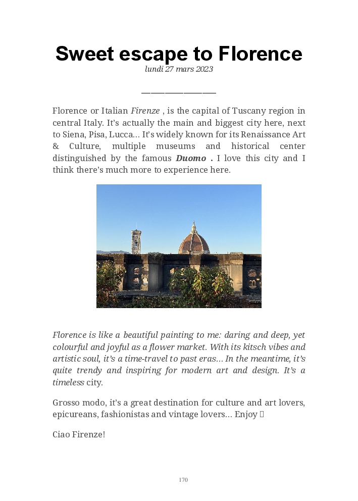 J’ai flâné aux bords des eaux d’Italie, d’Espagne, et de la Grèce. J’ai fait des road trips en Europe Centrale, et je suis partie à la découverte des Pays Nordiques et des Balkans. Je rêve de découvrir le reste du monde.