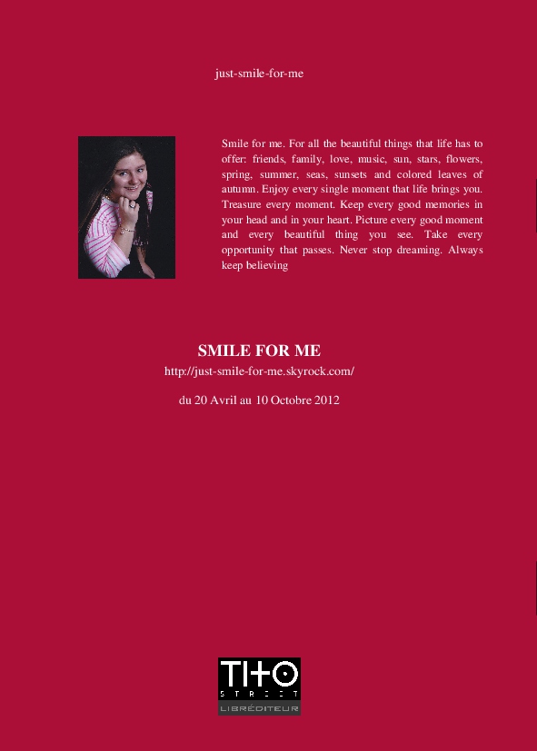 just-smile-for-me made the blook of their their blog Skyrock ! Support their creativity by buying their blook or create your own now on BlookUp!