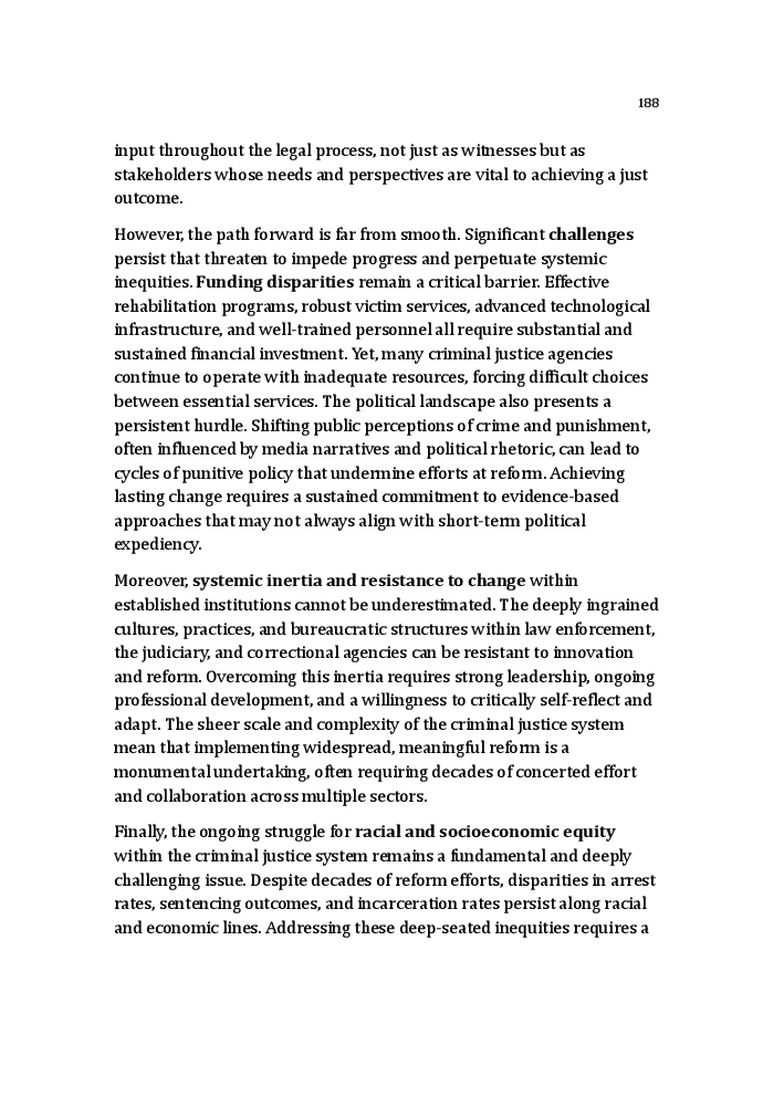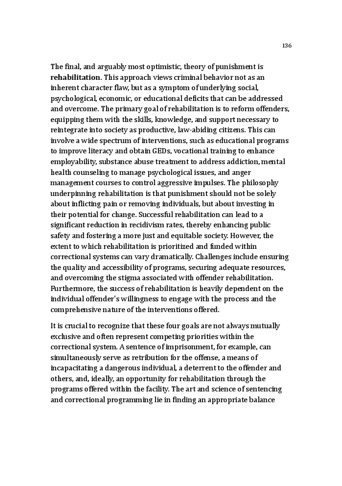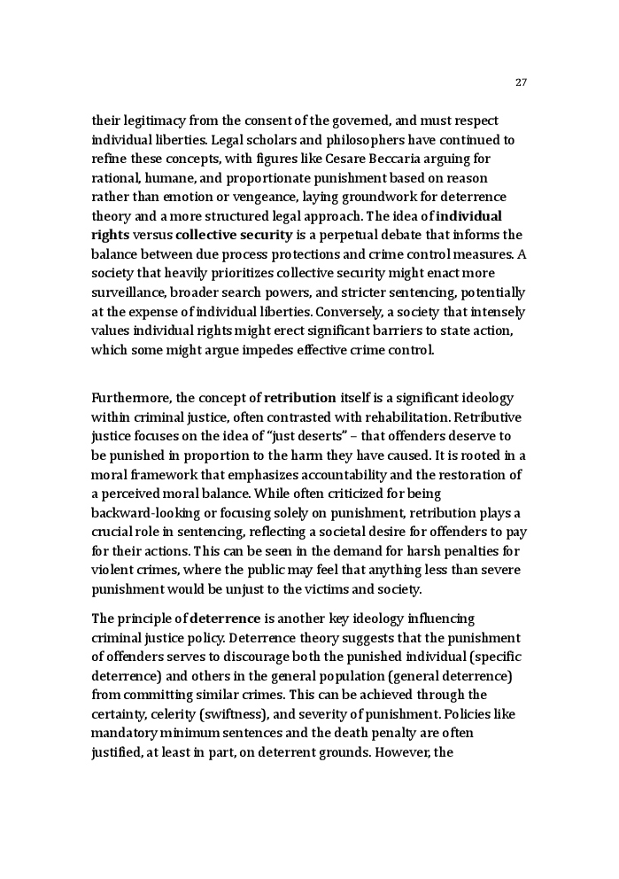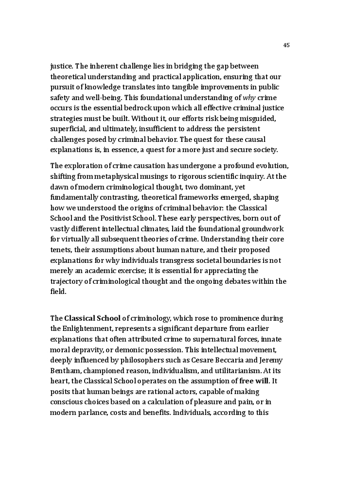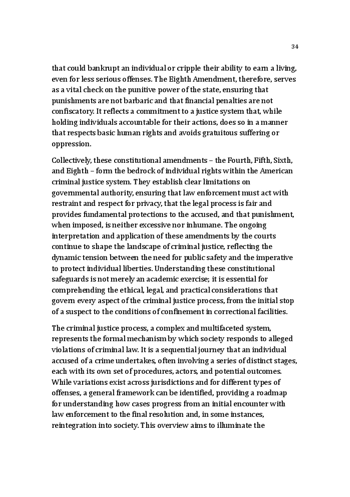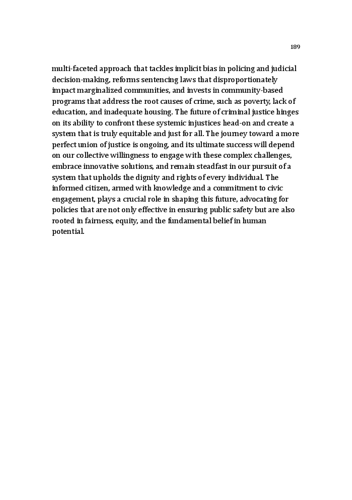 This book serves as an introduction to the field of criminal justice, aimed at anyone interested in understanding the complex systems of law enforcement, the judiciary, and corrections. The book provides a foundational understanding of the criminal justice process, the theoretical frameworks that guide it, and the practical implications of criminal justice policies.