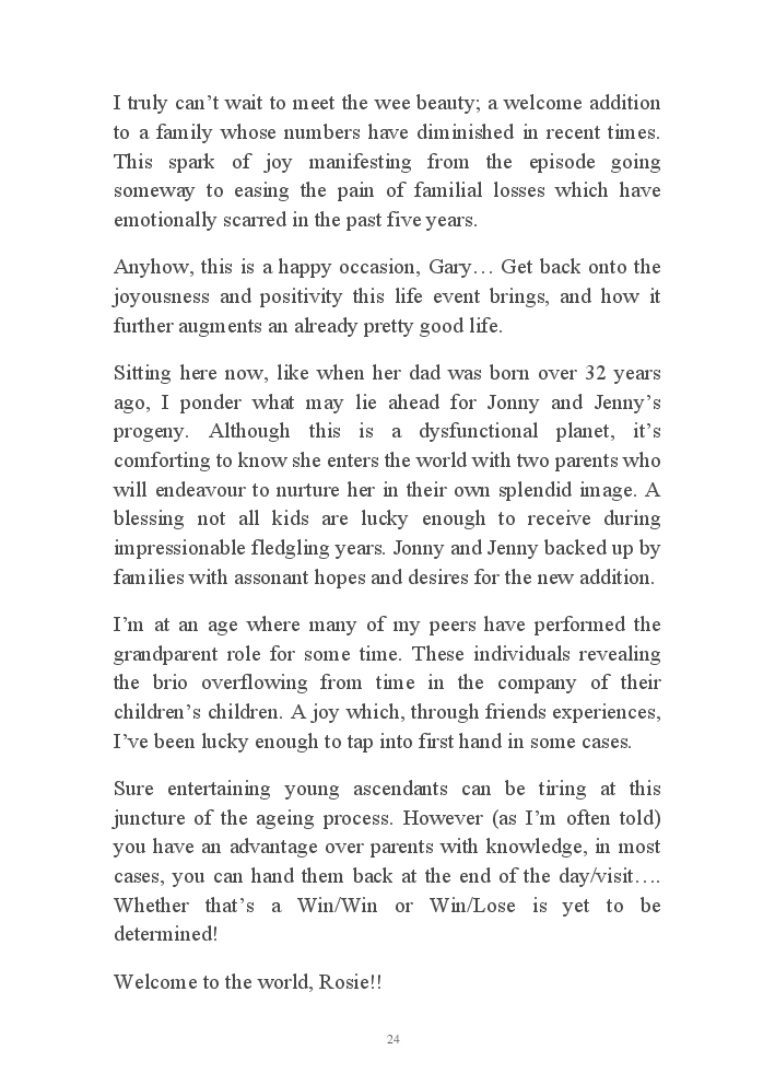 The Year That Was is a collection of Gary Strachan’s blogs throughout 2023. These journals an amalgam of whimsical tales relating to becoming a grandfather for the first time, various camper van trips, job searches, along with offbeat observations on a variety of topics. The author also reveals why he declined opportunities to apply for the job of Santa Claus and the Head of Colonic Irrigation for a pizza franchise.