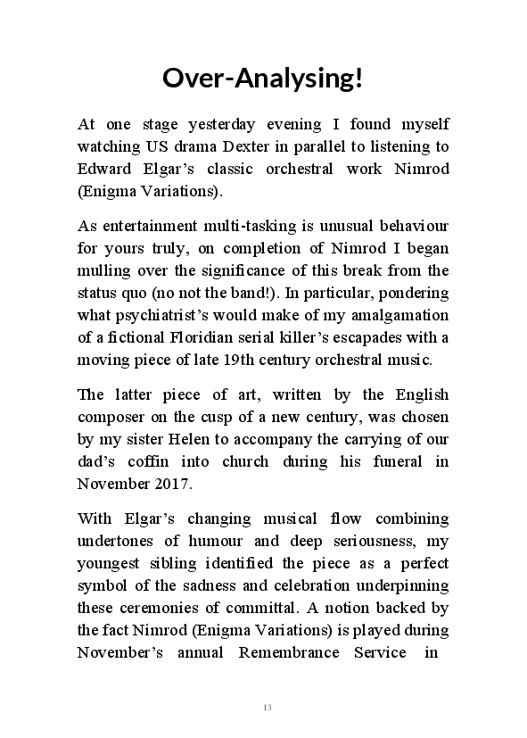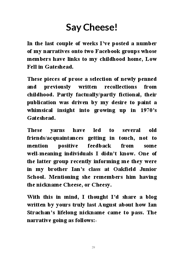 'What Lays Ahead' is a collection of Gary Strachan's daily musings on the build up to spring 2019. These diarised rambles including memories of his schooldays, friends/acquaintances and exploits during his 1970s/80s upbringing in the north east England town of Gateshead. Incorporated within this tome the 'fascinating' tales of how his brother once mispronounced the word chimney and how coal buckets got their name.