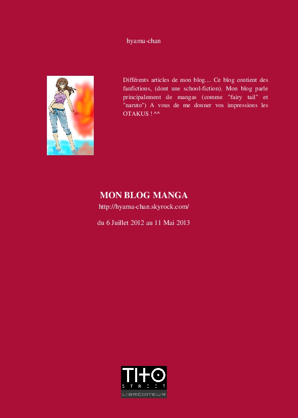 hyama-chan made the blook of their their blog Skyrock ! Support their creativity by buying their blook or create your own now on BlookUp!