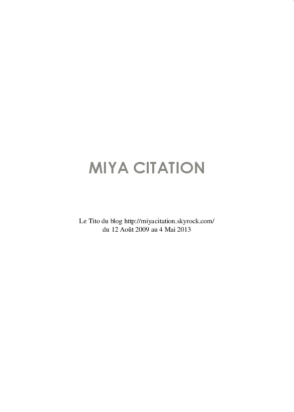 miyaCitation made the blook of their their blog Skyrock ! Support their creativity by buying their blook or create your own now on BlookUp!