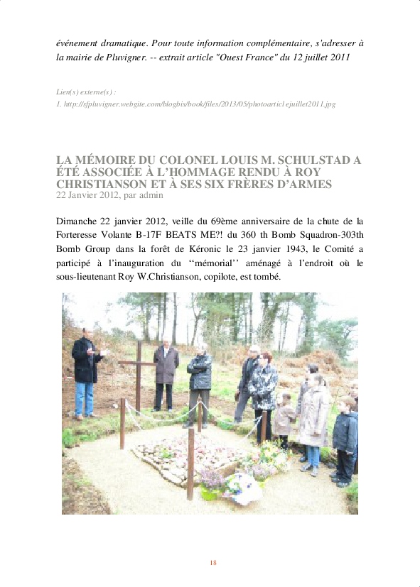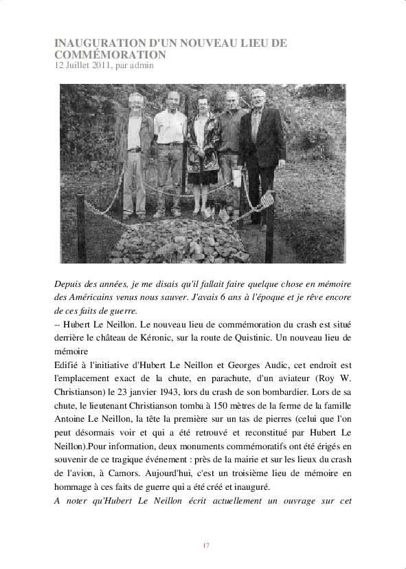 Parmi les temps forts : l’inauguration de la stèle "Beats Me !?" par nos amis américains, tous deux survivants du crash de cette forteresse volante dans la forêt de Keronic.