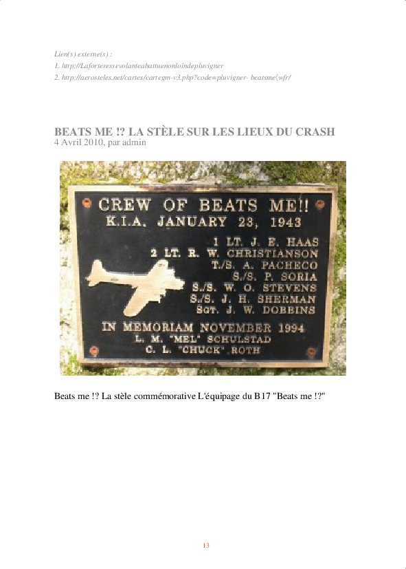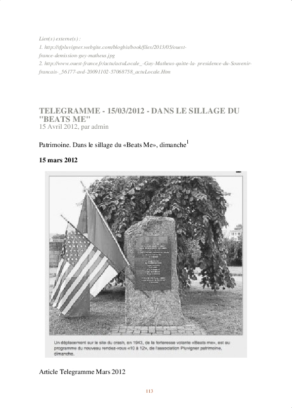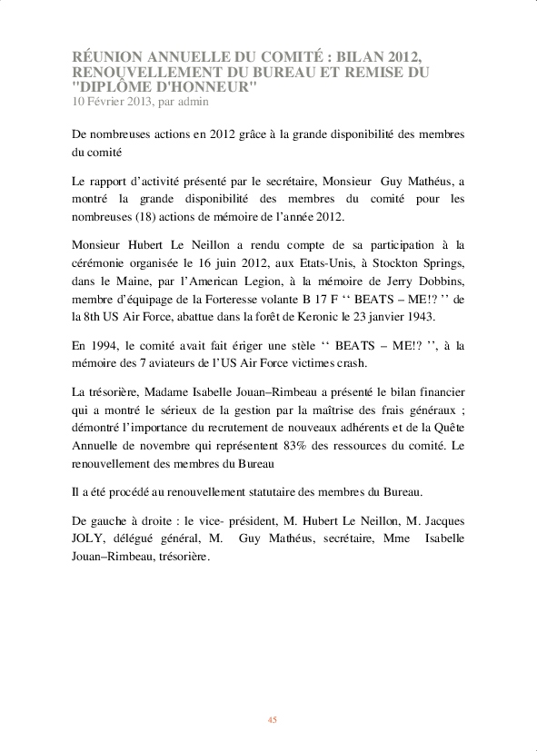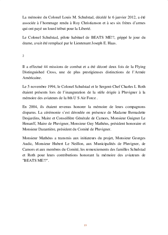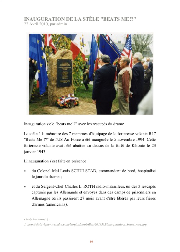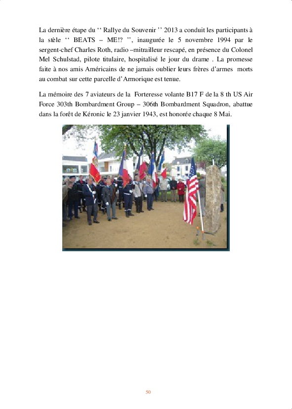 Parmi les temps forts : l’inauguration de la stèle "Beats Me !?" par nos amis américains, tous deux survivants du crash de cette forteresse volante dans la forêt de Keronic.