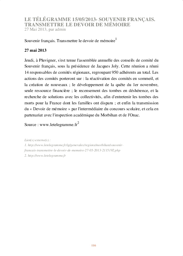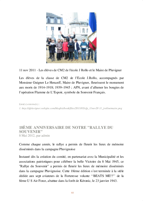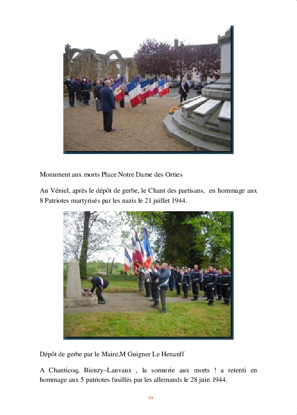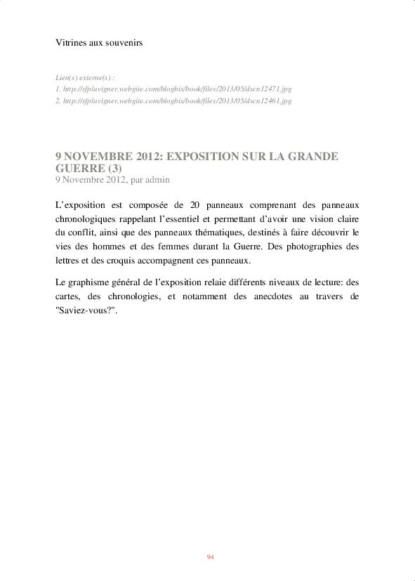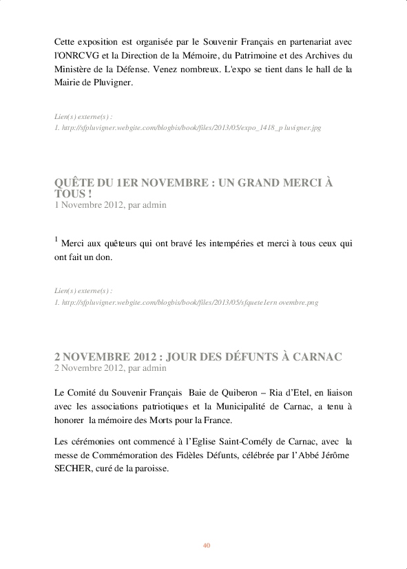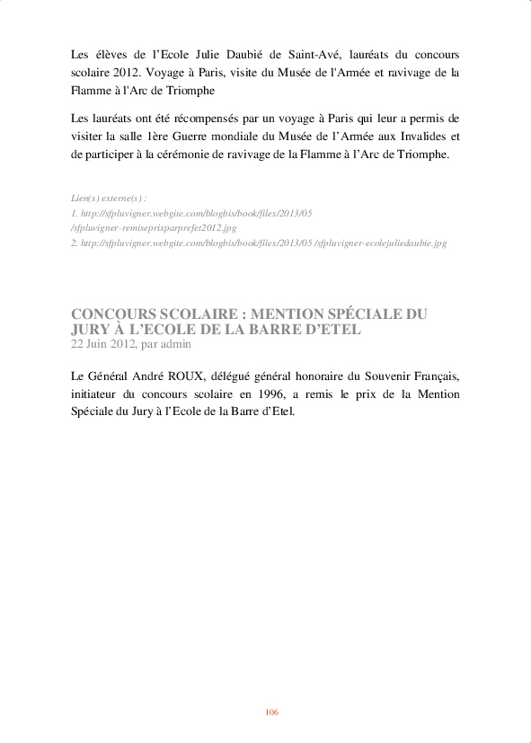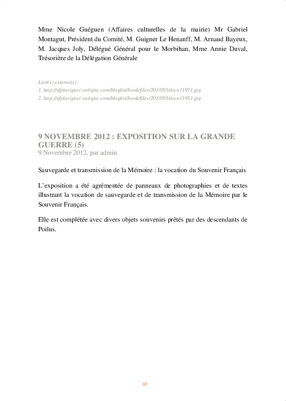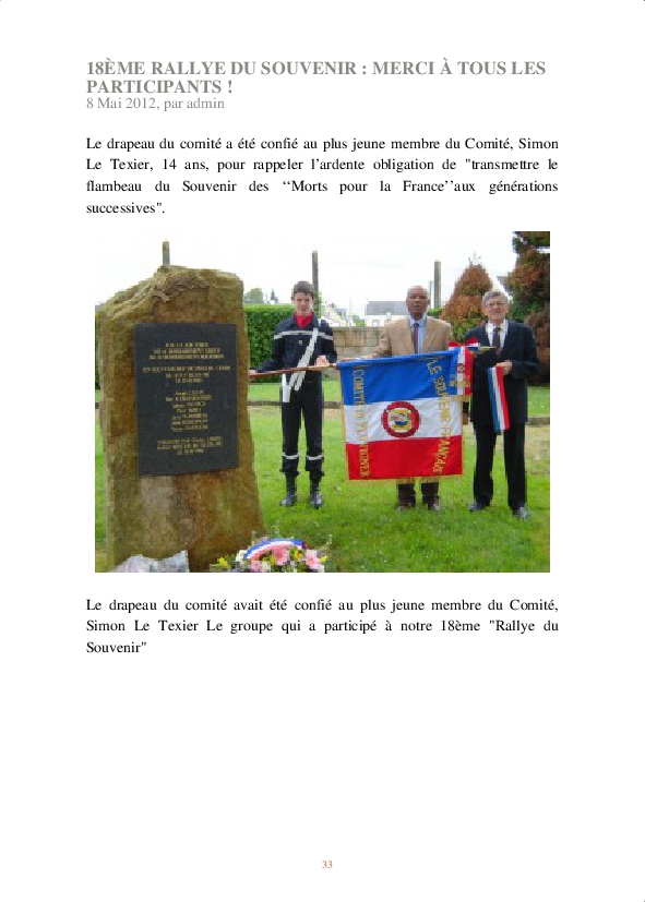 À partir de là, un certain nombre d’actions ont été menées : participation aux cérémonies commémoratives, réhabilitation du monument aux morts de la guerre de 1870, instauration d’un rallye du Souvenir, organisation d’expositions…