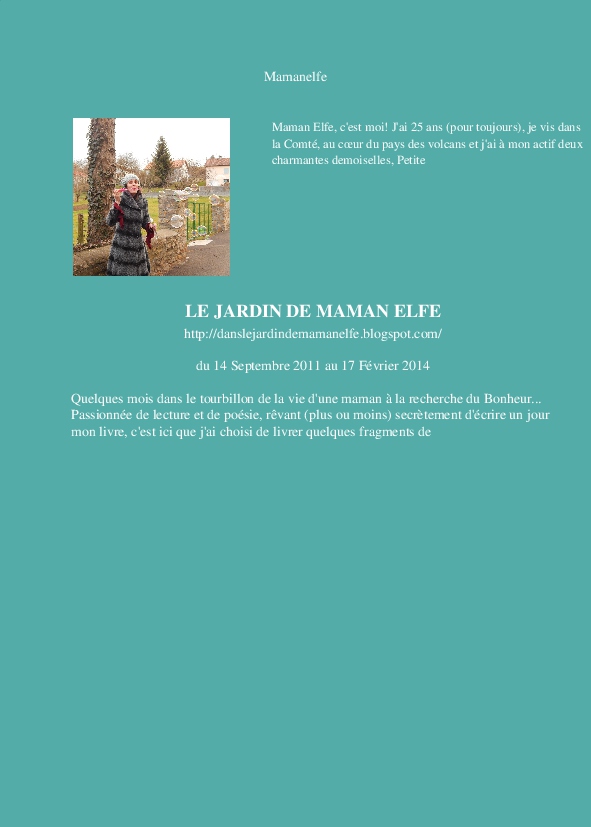 Mamanelfe made the blook of their their blog Blogger/Blogspot ! Support their creativity by buying their blook or create your own now on BlookUp!