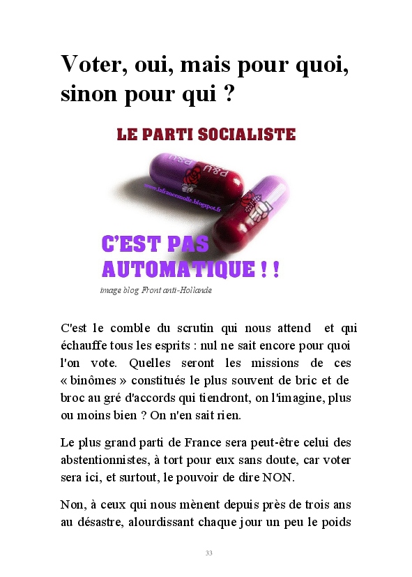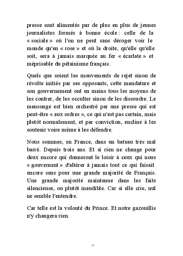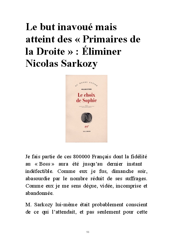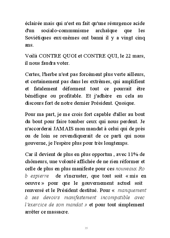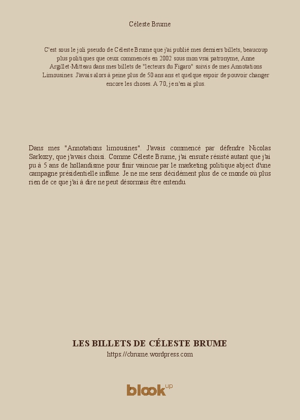 Dans mes "Annotations limousines". J'avais commencé par défendre Nicolas Sarkozy, que j'avais choisi. Comme Céleste Brume, j'ai ensuite résisté autant que j'ai pu à 5 ans de hollandisme pour finir vaincue par le marketing politique abject d'une campagne présidentielle infâme. Je ne me sens décidément plus de ce monde où plus rien de ce que j'ai à dire ne peut désormais être entendu.