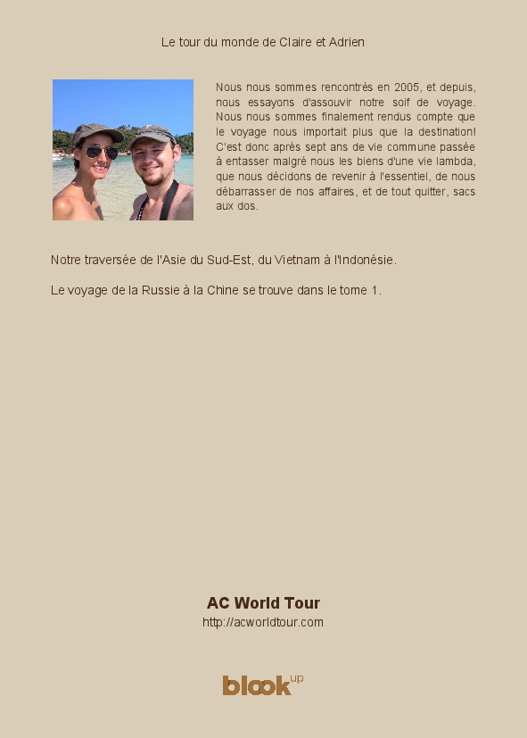 Le tour du monde de Claire et Adrien made the blook of their their blog Wordpress ! Support their creativity by buying their blook or create your own now on BlookUp!