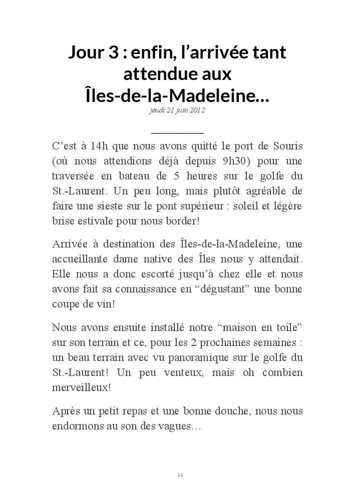Ce premier tome retrace les aventures à partir des Îles-de-la-Madeleine jusqu'au États-Unis, en Californie. Des Îles à la Californie, en traversant d'abord les provinces du Canada, le territoire du Yukon et l'Alaska! Au programme : la mer, les parcs nationaux, les sites historiques, l'observation des animaux, les montagnes, la ruée vers l'or, les glaciers, la neige et le soleil!