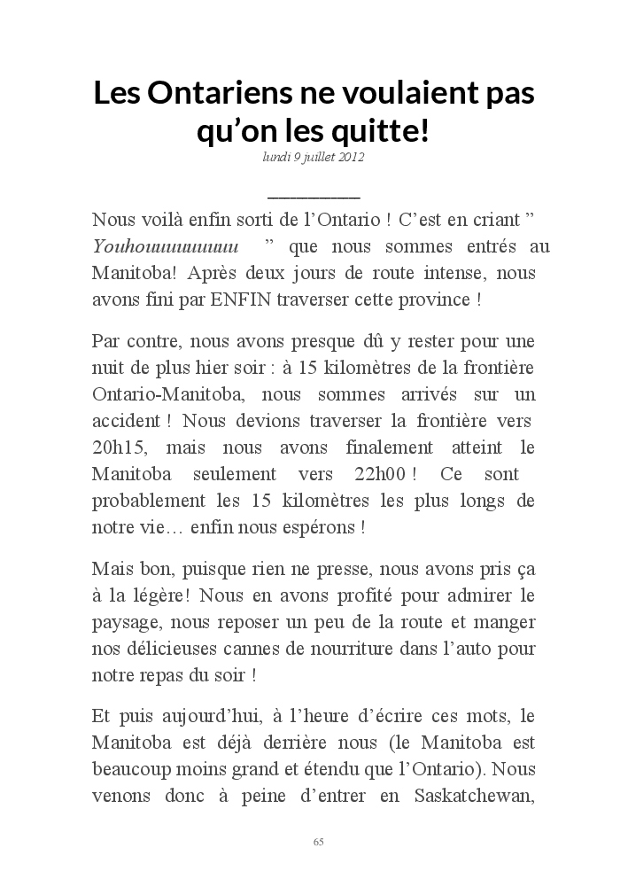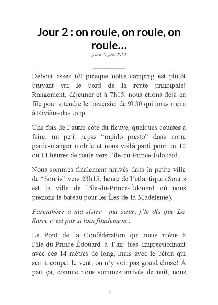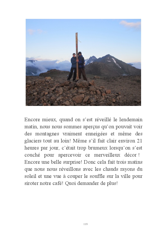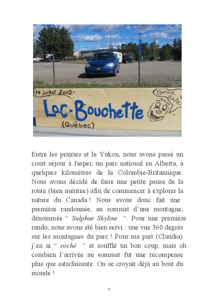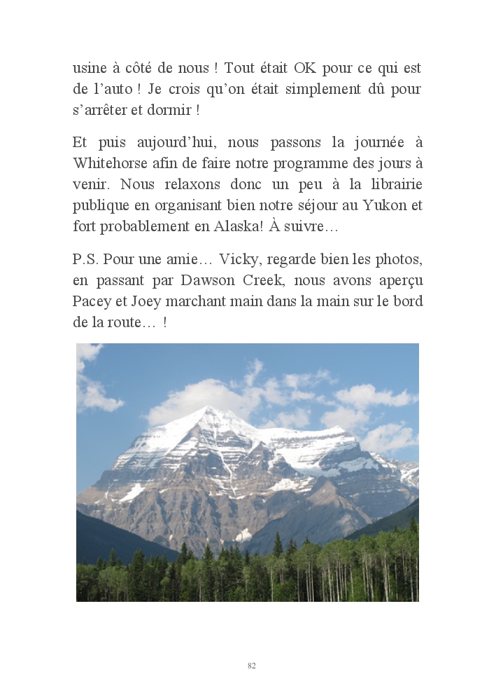 Ce premier tome retrace les aventures à partir des Îles-de-la-Madeleine jusqu'au États-Unis, en Californie. Des Îles à la Californie, en traversant d'abord les provinces du Canada, le territoire du Yukon et l'Alaska! Au programme : la mer, les parcs nationaux, les sites historiques, l'observation des animaux, les montagnes, la ruée vers l'or, les glaciers, la neige et le soleil!
