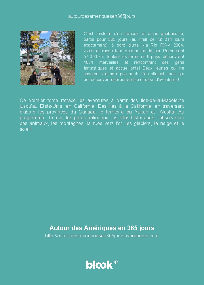 autourdesameriquesen365jours made the blook of their their blog Wordpress ! Support their creativity by buying their blook or create your own now on BlookUp!