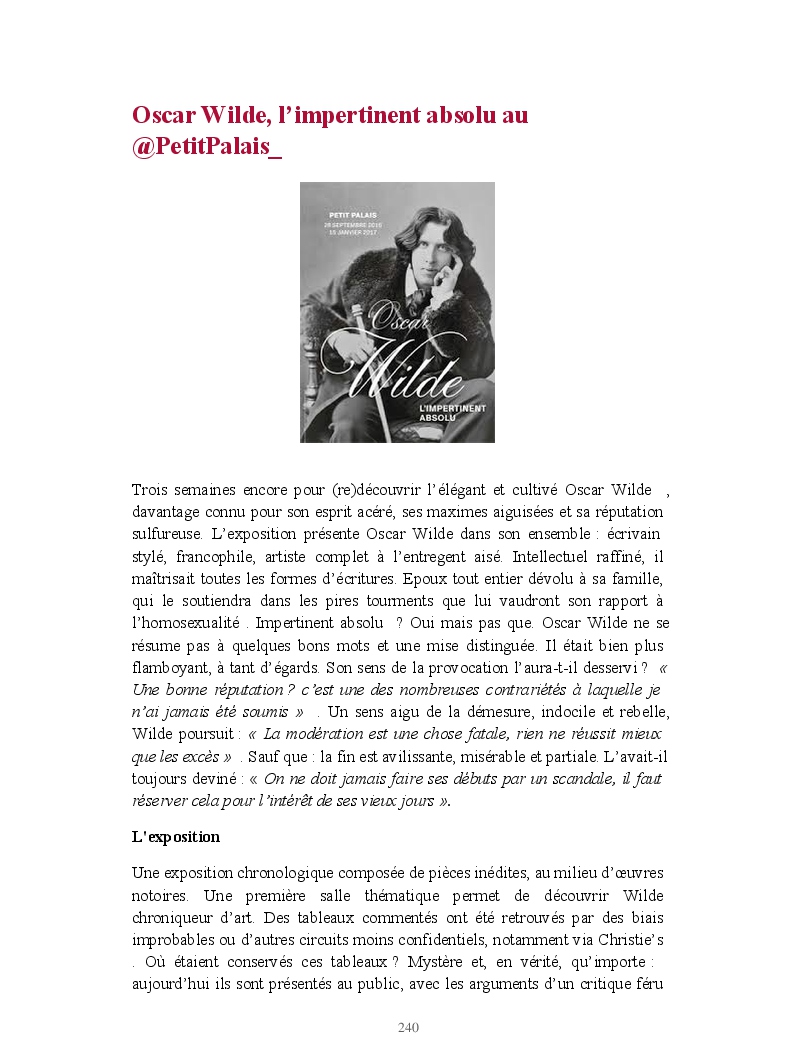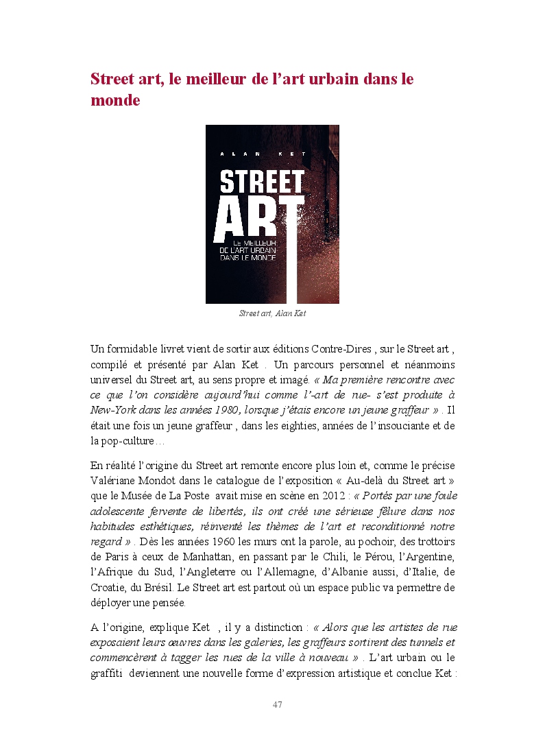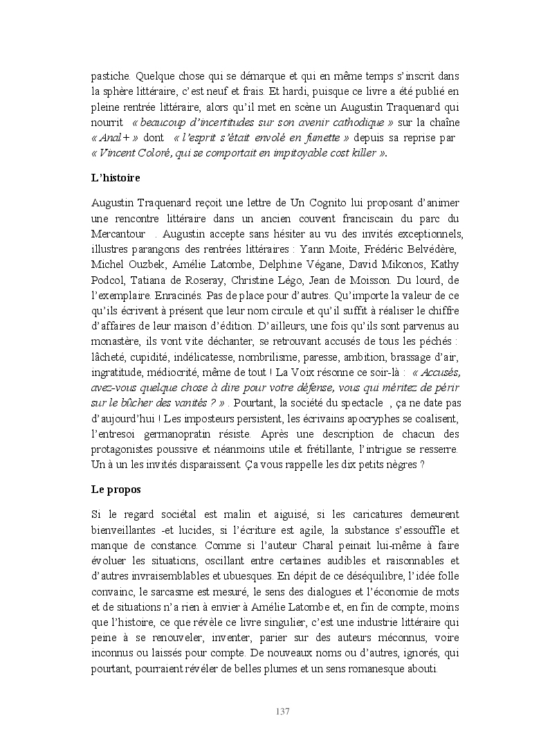 Cet ouvrage reprend une sélection de chroniques culturelles, tous domaines confondus.