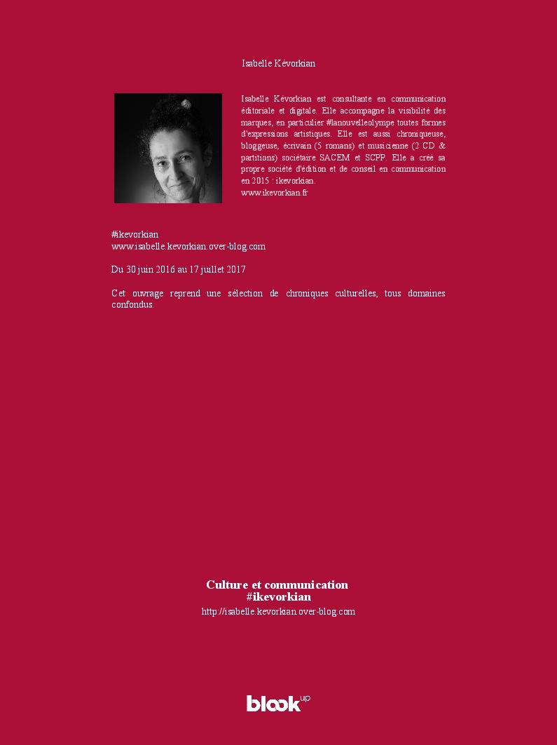 Isabelle Kévorkian made the blook of their their blog Overblog ! Support their creativity by buying their blook or create your own now on BlookUp!