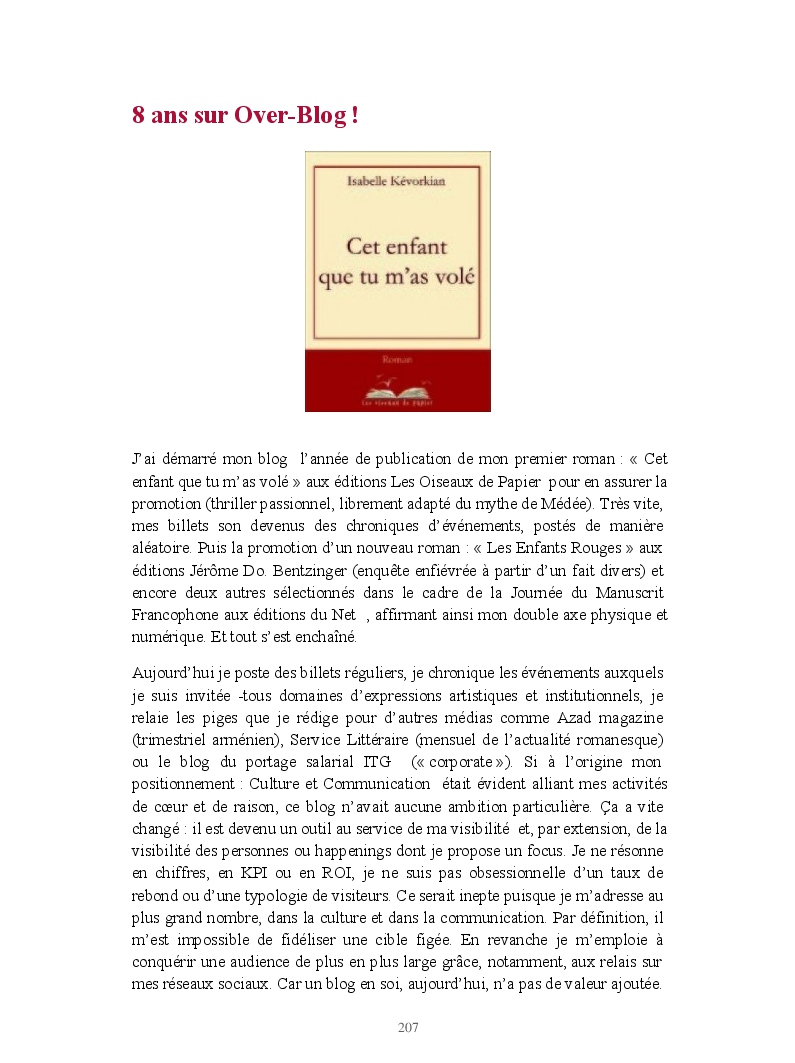 Isabelle Kévorkian made the blook of their their blog Overblog ! Support their creativity by buying their blook or create your own now on BlookUp!