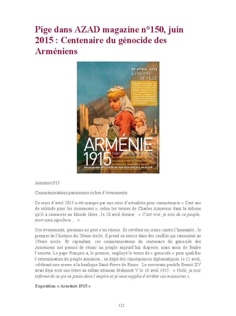 Cet ouvrage reprend une sélection des chroniques rédigées notamment pour "Service Littéraire", mensuel de l'actualité romanesque, et "Azad magazine", trimestriel arménien d'information, pour lesquels elle collabore respectivement depuis 2008 et 2013.