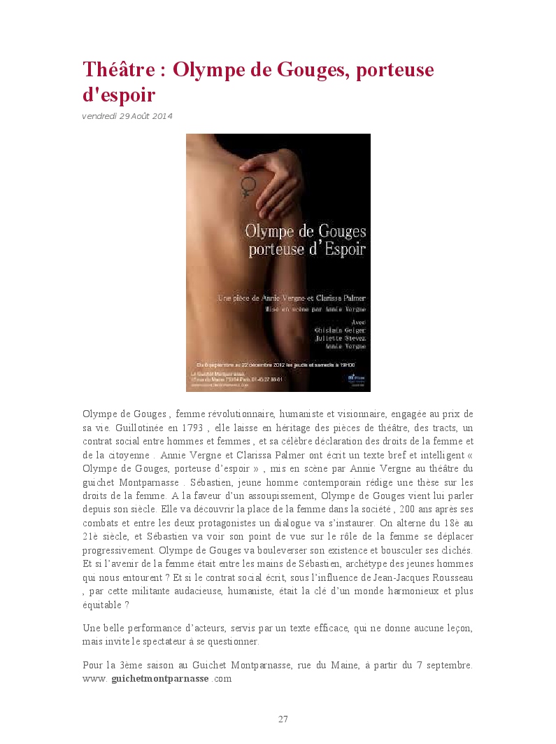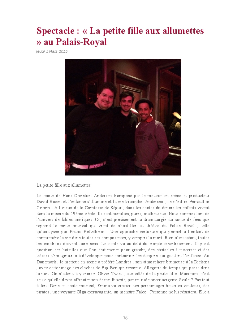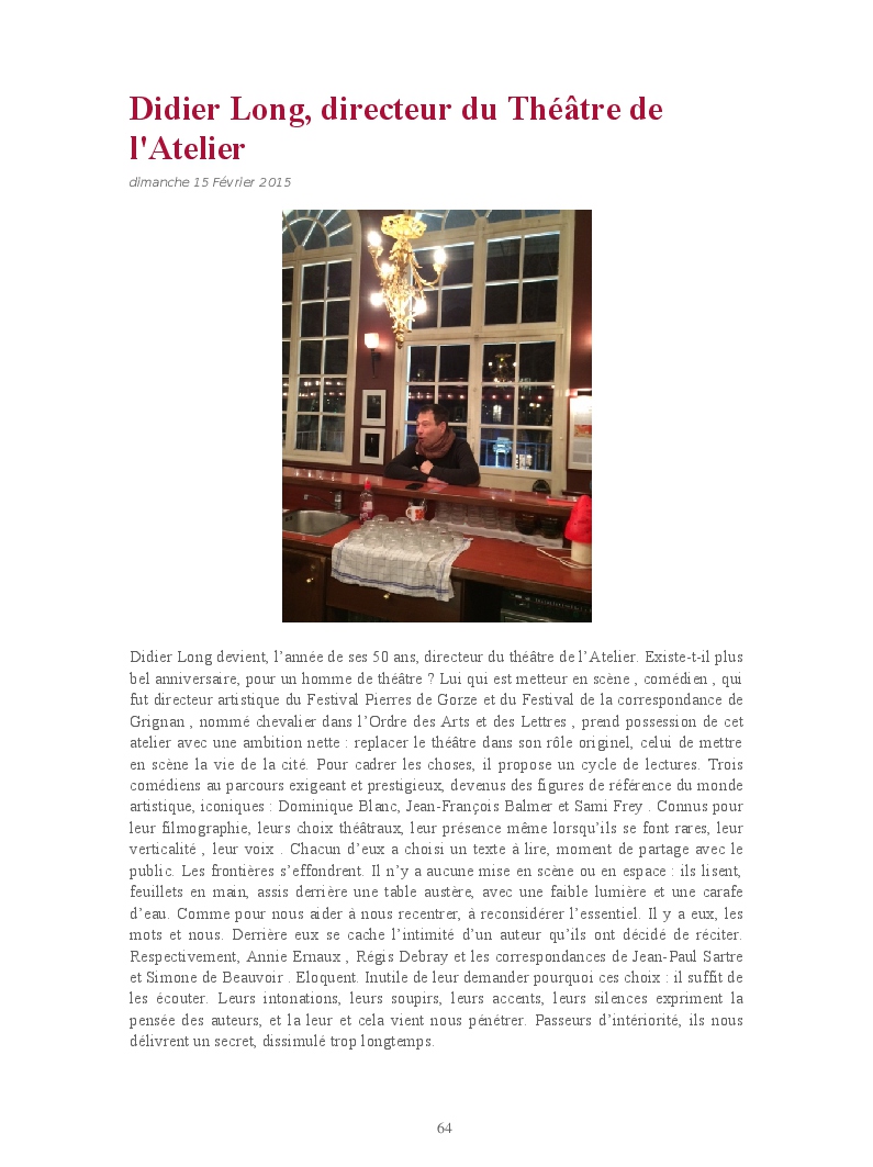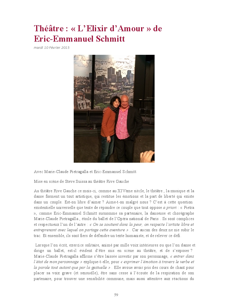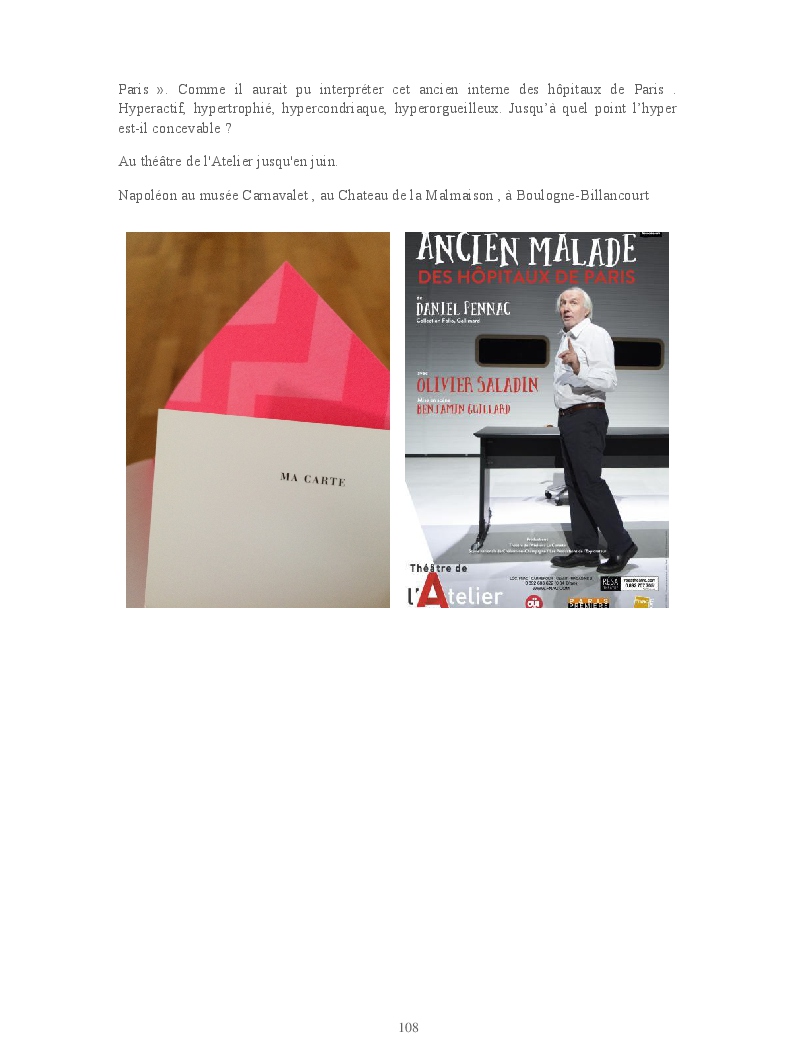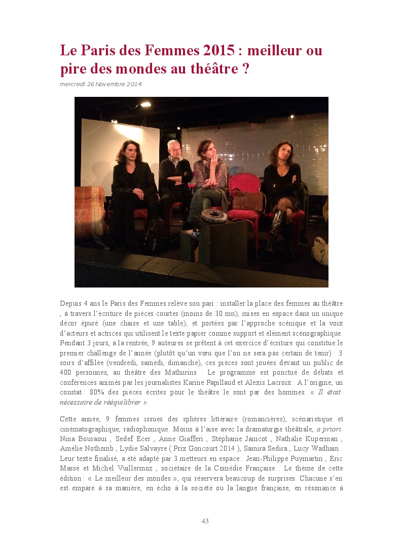 Cet ouvrage reprend les chroniques dédiées au théâtre, à la musique, aux spectacles, à l'opéra et l'opérette, aux ballets et à la danse.