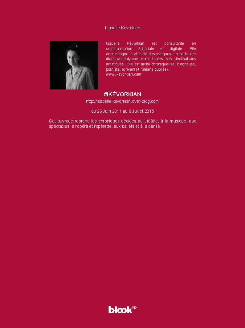 Isabelle Kévorkian made the blook of their their blog Overblog ! Support their creativity by buying their blook or create your own now on BlookUp!