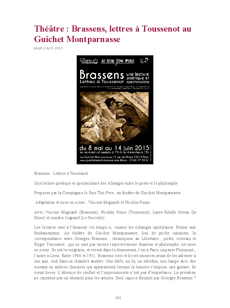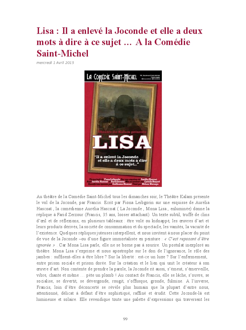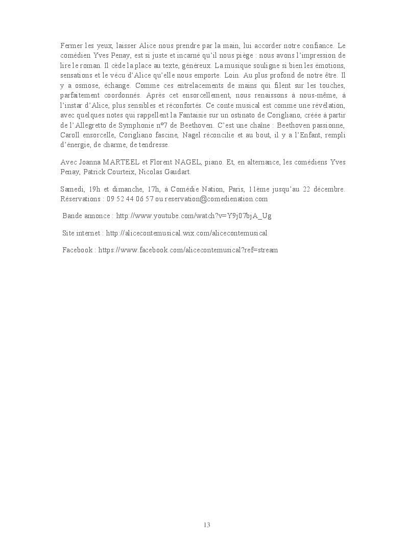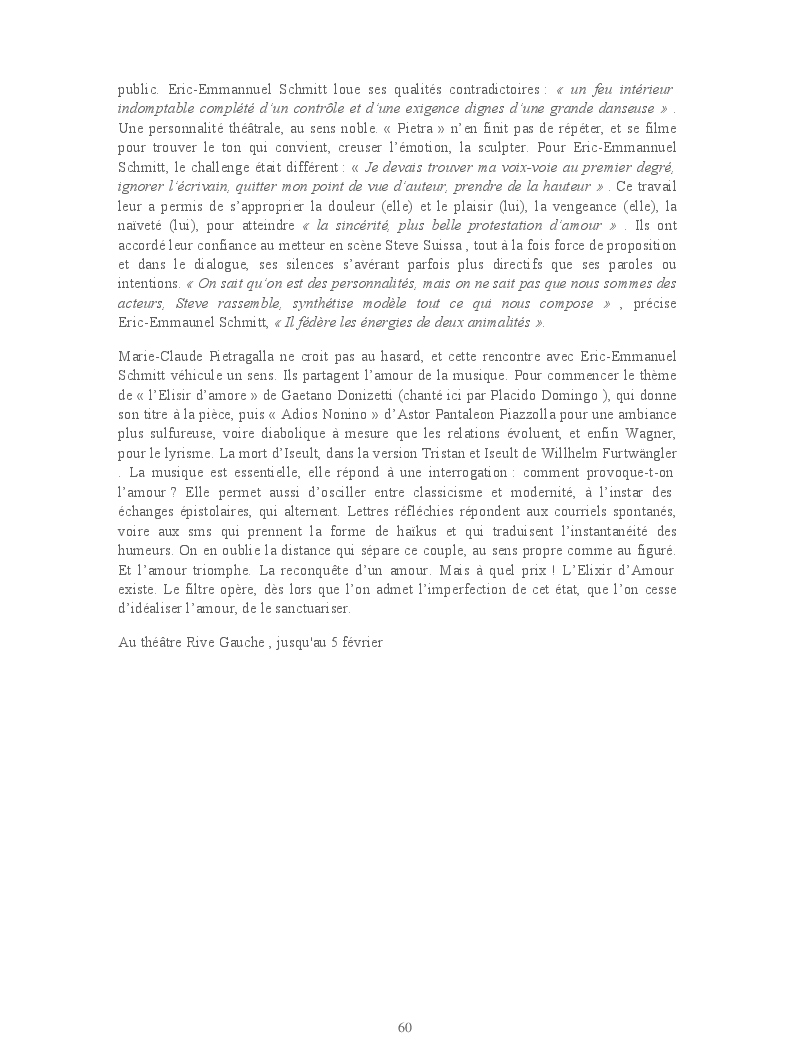 Cet ouvrage reprend les chroniques dédiées au théâtre, à la musique, aux spectacles, à l'opéra et l'opérette, aux ballets et à la danse.