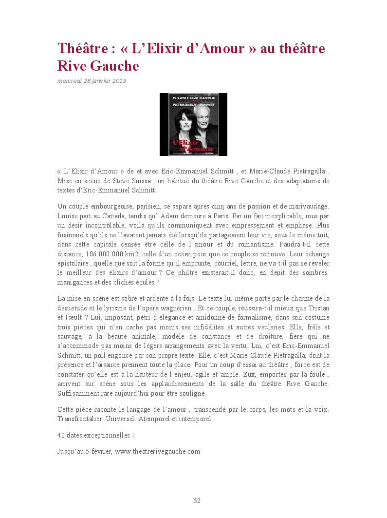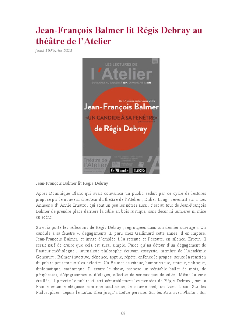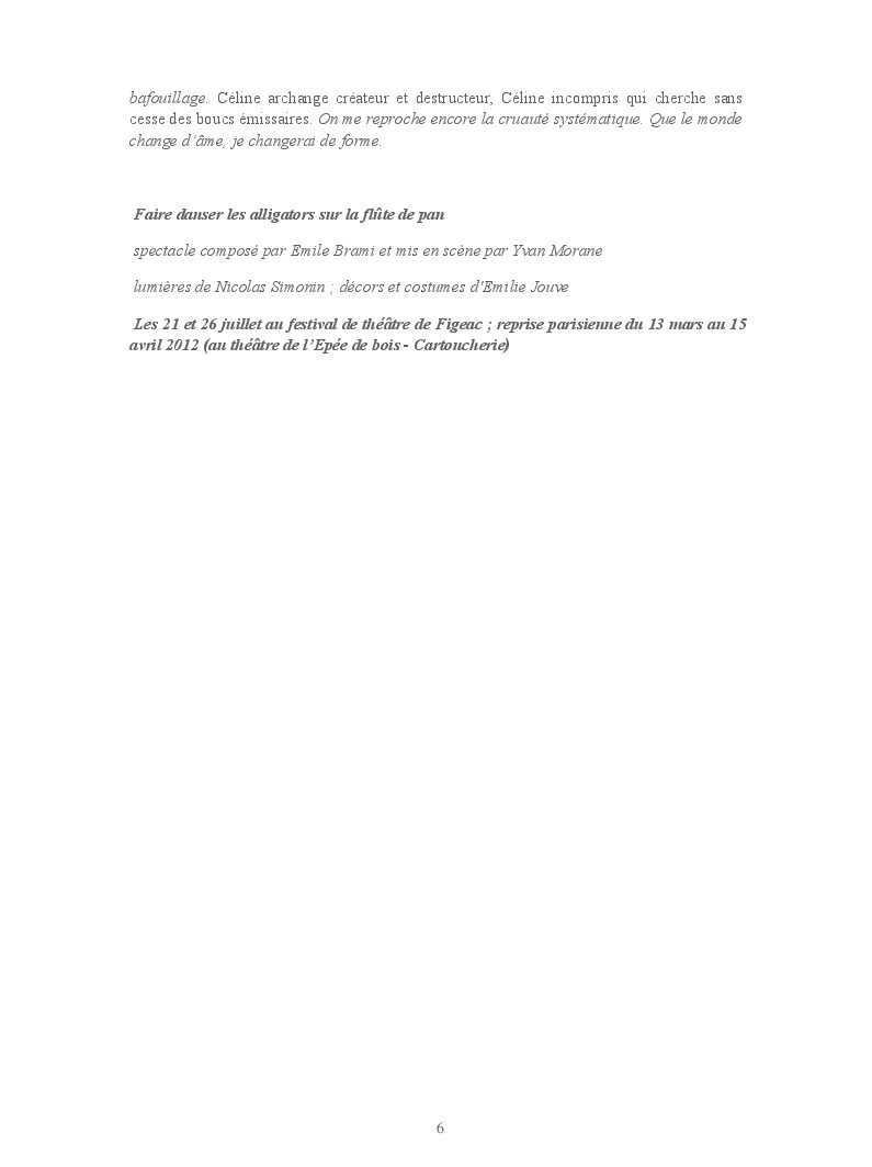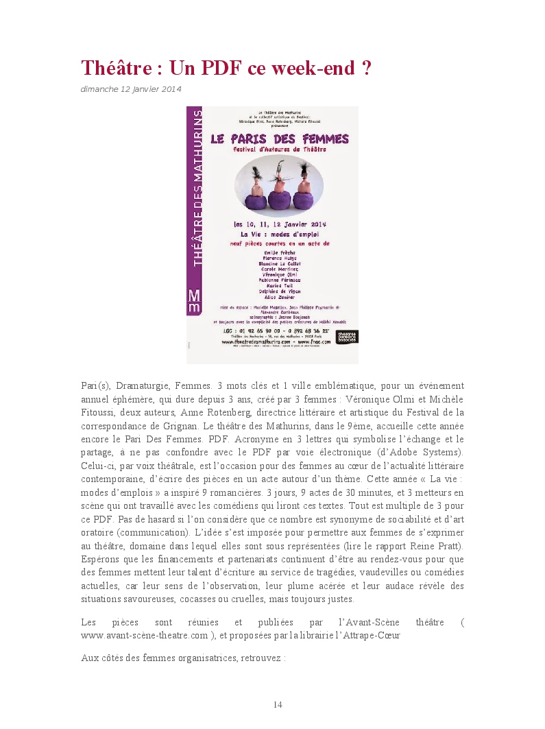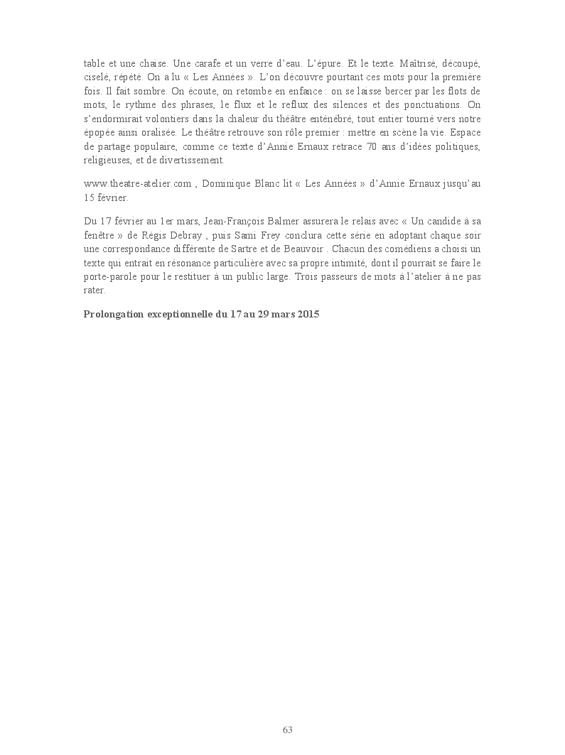 Cet ouvrage reprend les chroniques dédiées au théâtre, à la musique, aux spectacles, à l'opéra et l'opérette, aux ballets et à la danse.