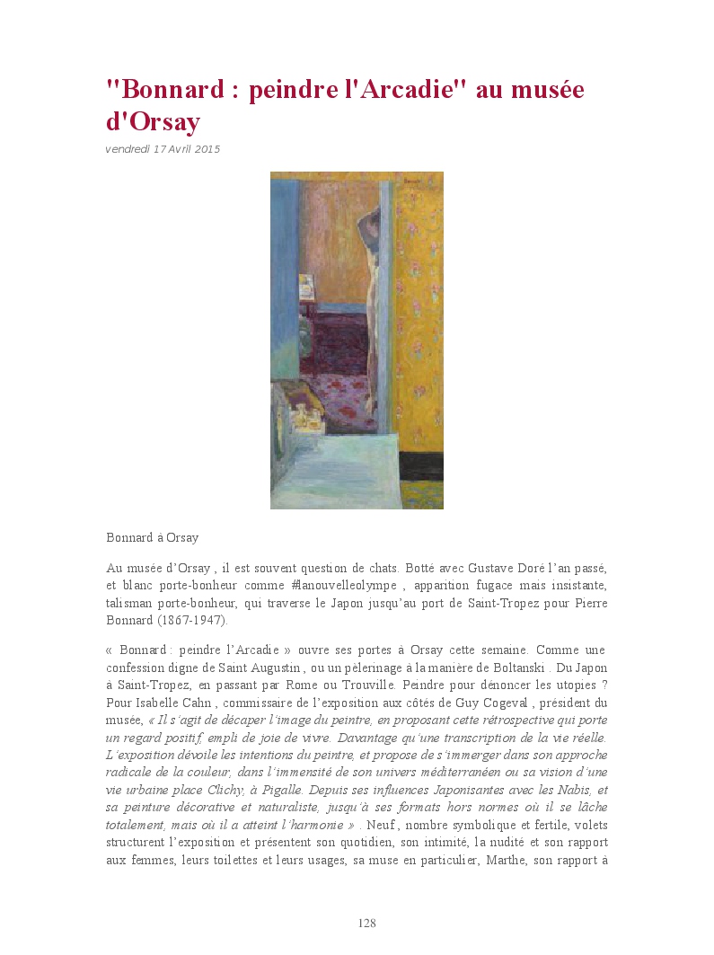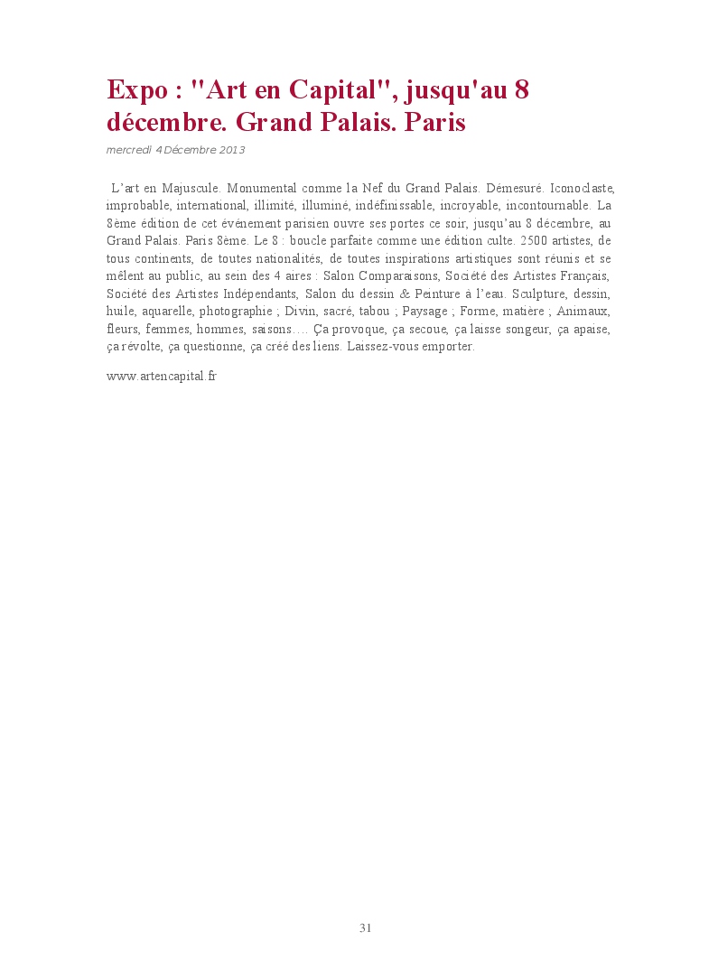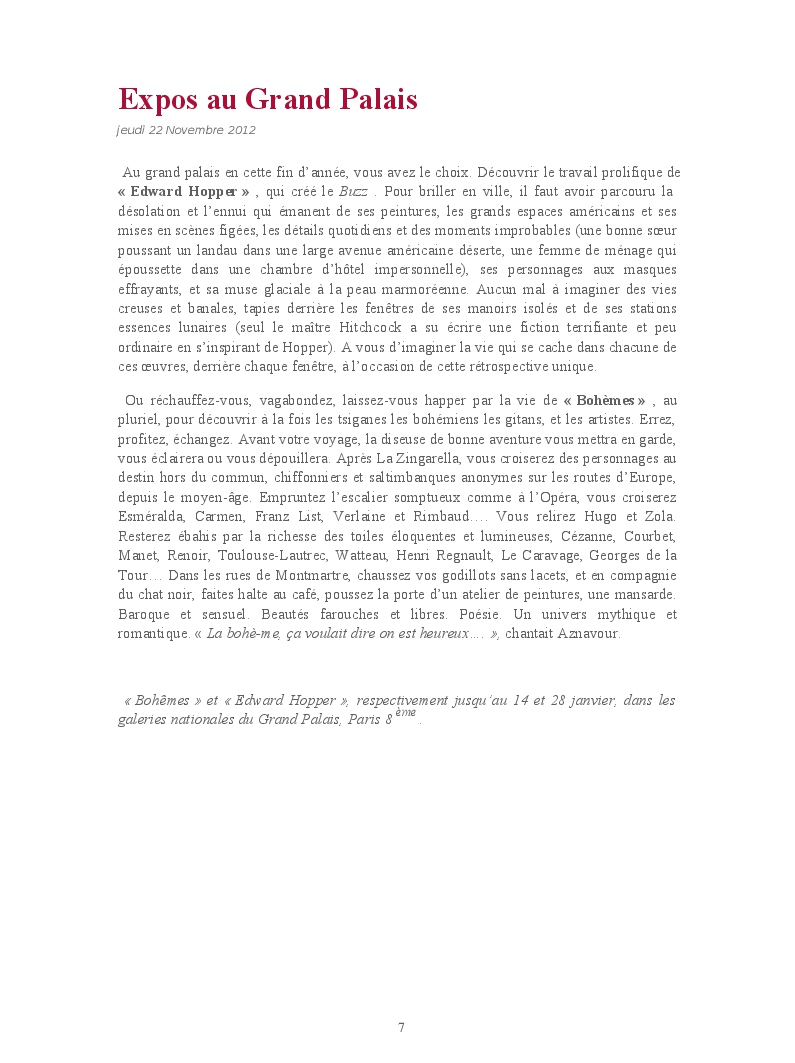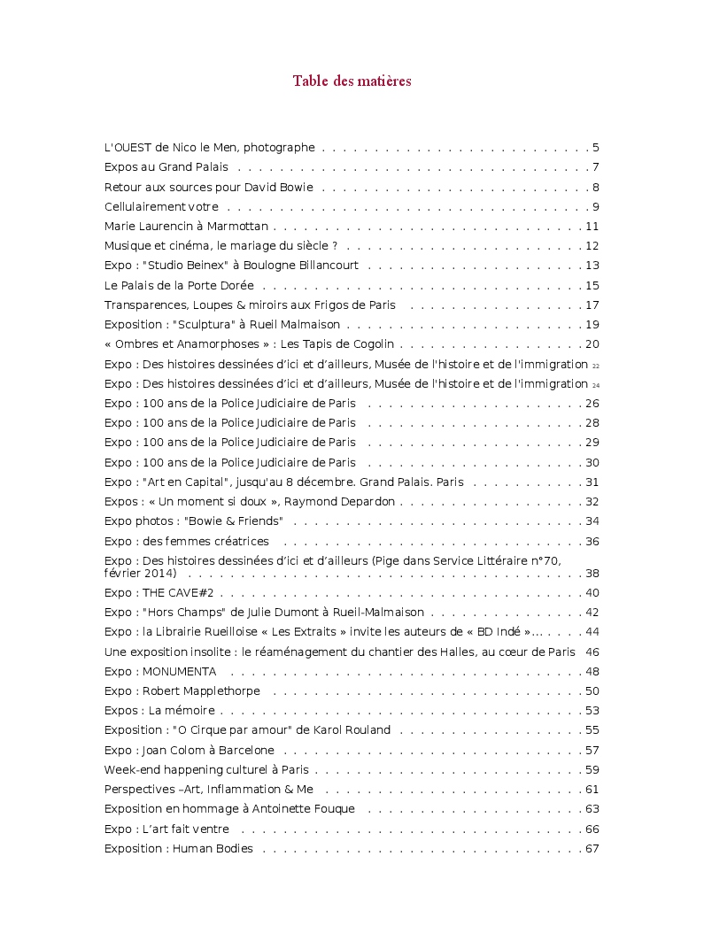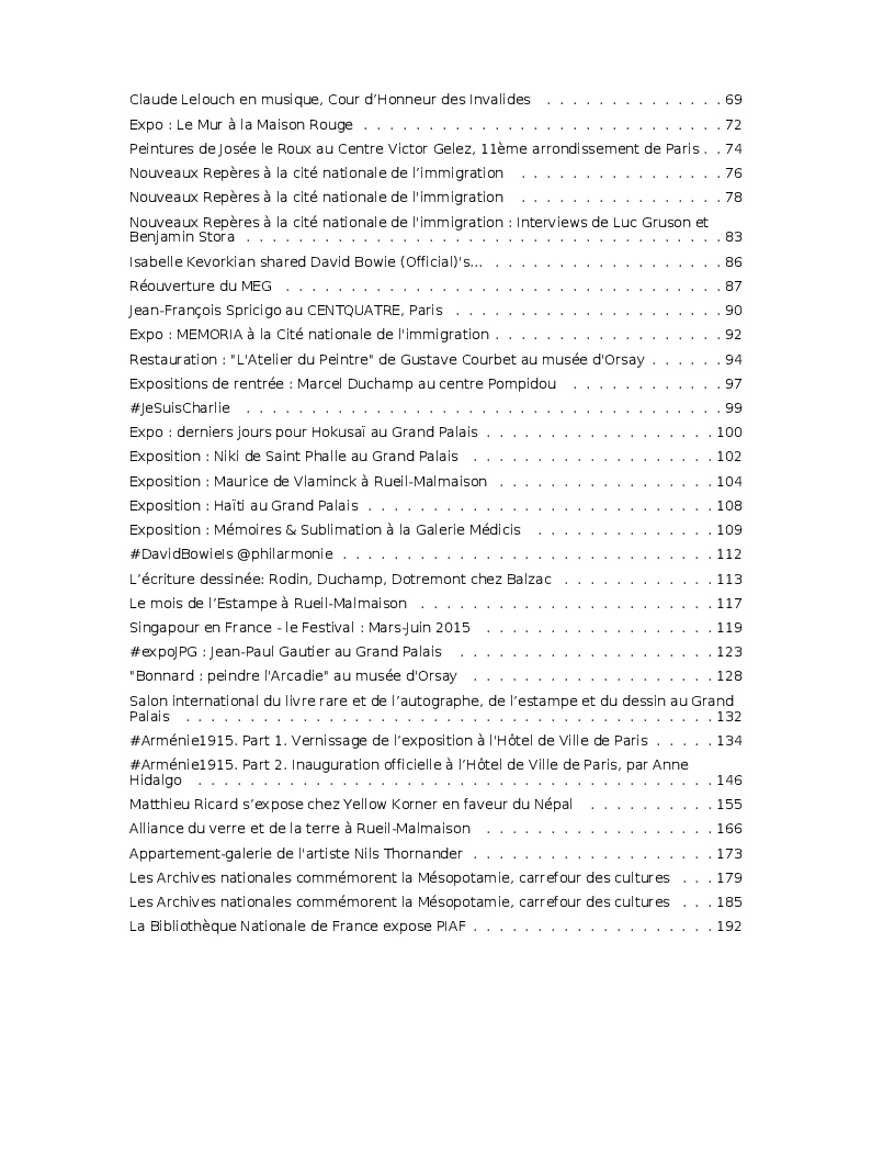 Cet ouvrage reprend une sélection de chroniques dédiées aux expositions et événements culturels parisiens.