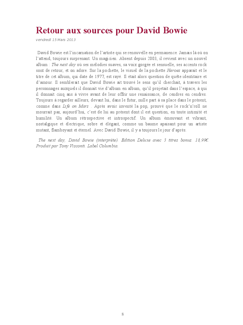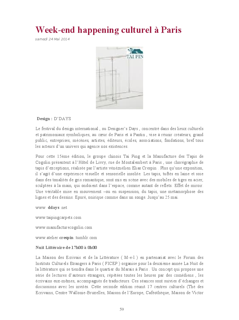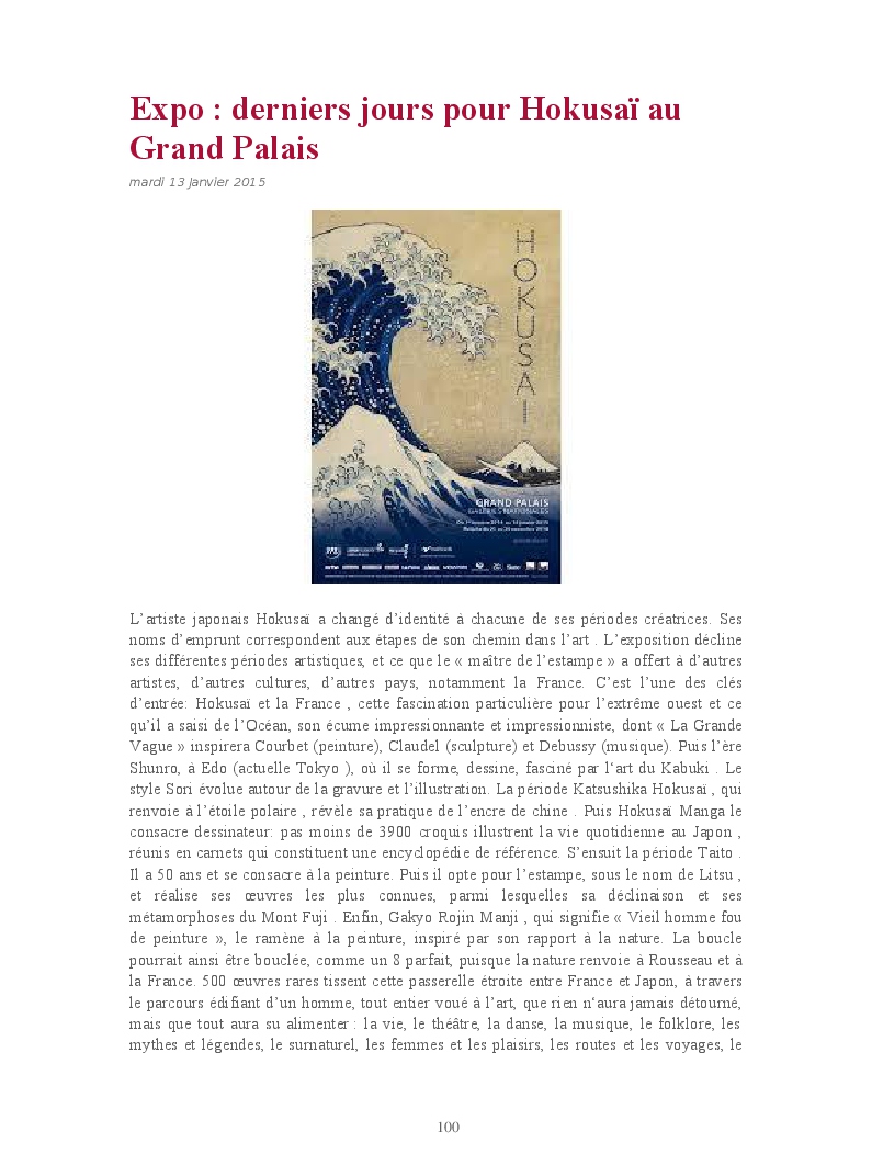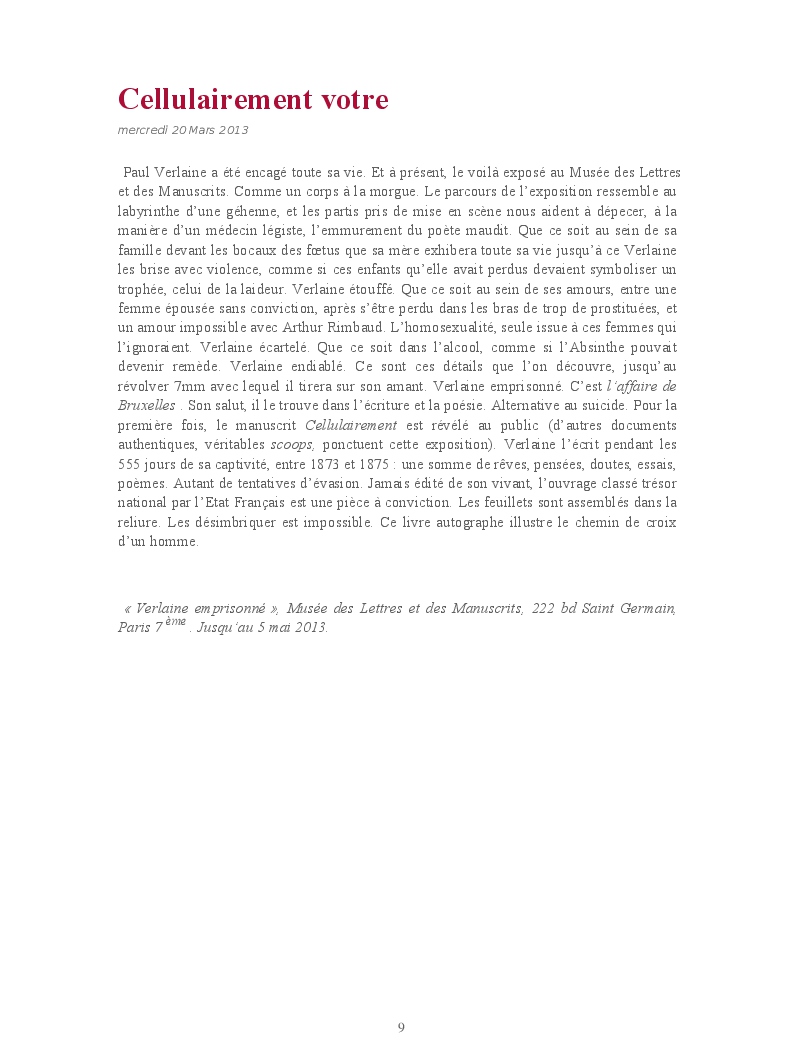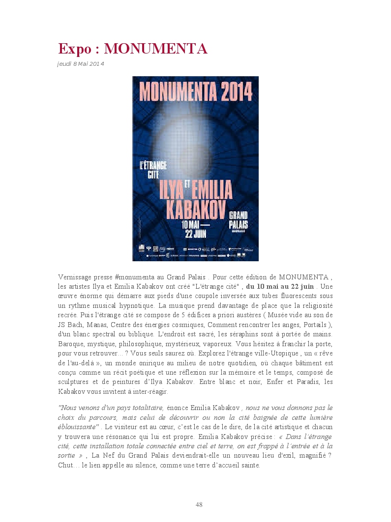 Cet ouvrage reprend une sélection de chroniques dédiées aux expositions et événements culturels parisiens.
