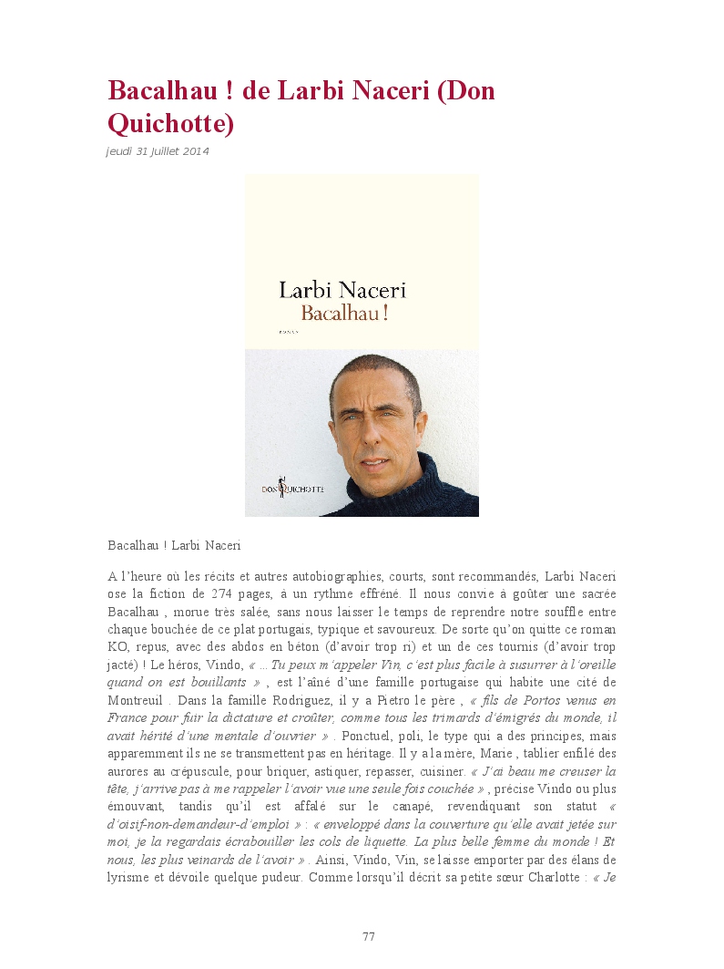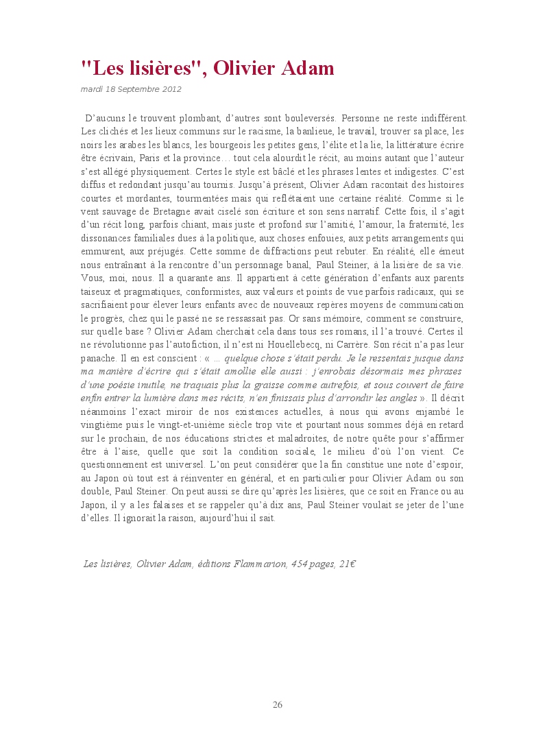 Cet ouvrage reprend une sélection de chroniques culturelles, en particulier littéraires.