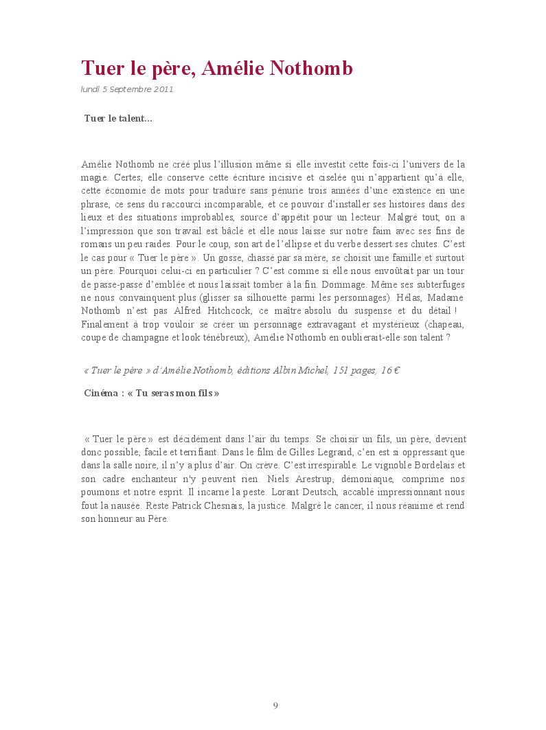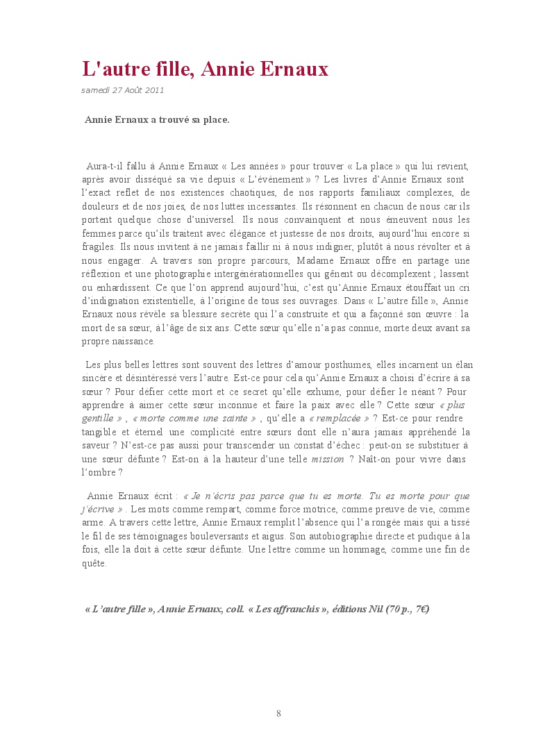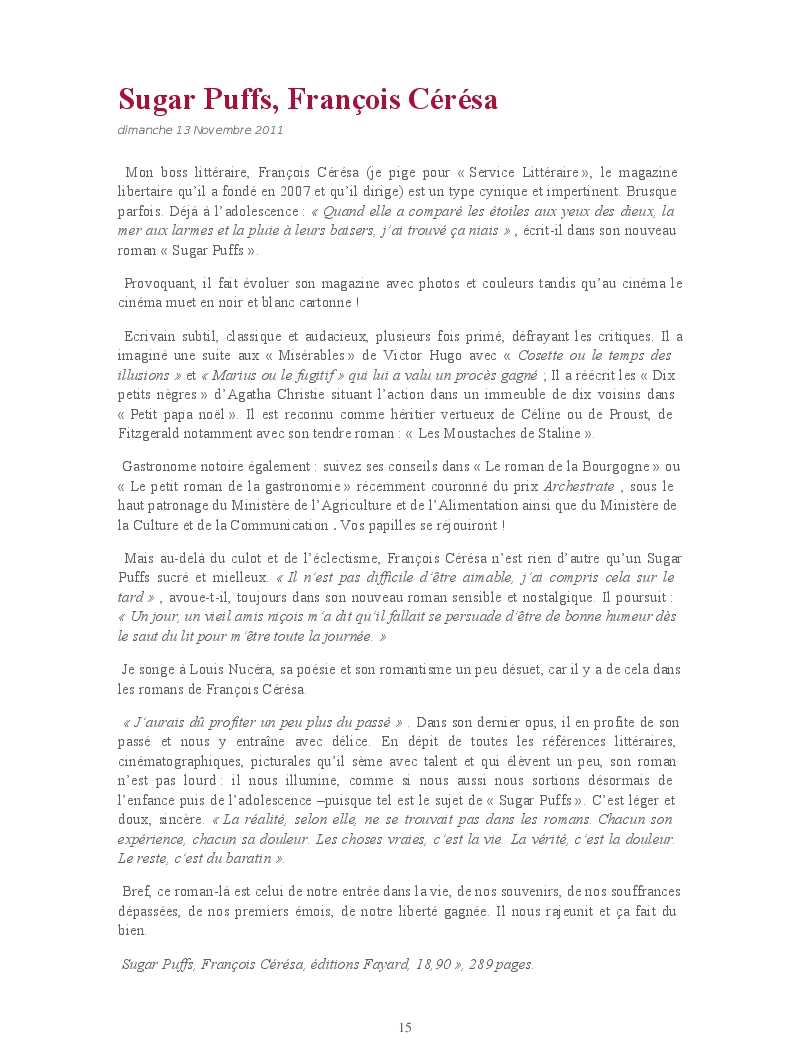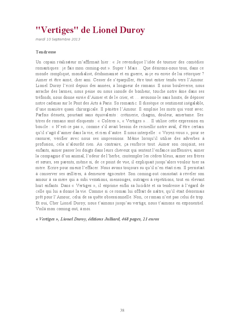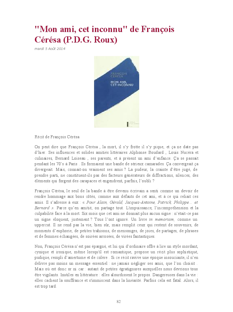 Cet ouvrage reprend une sélection de chroniques culturelles, en particulier littéraires.