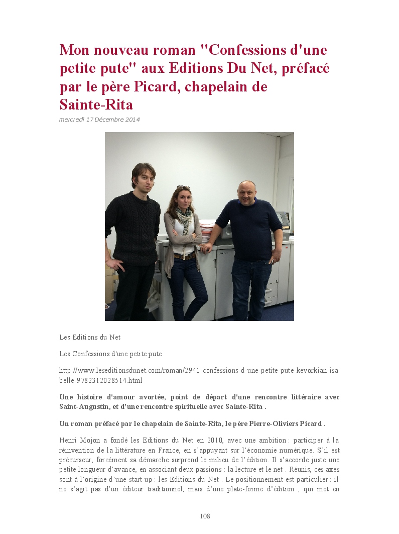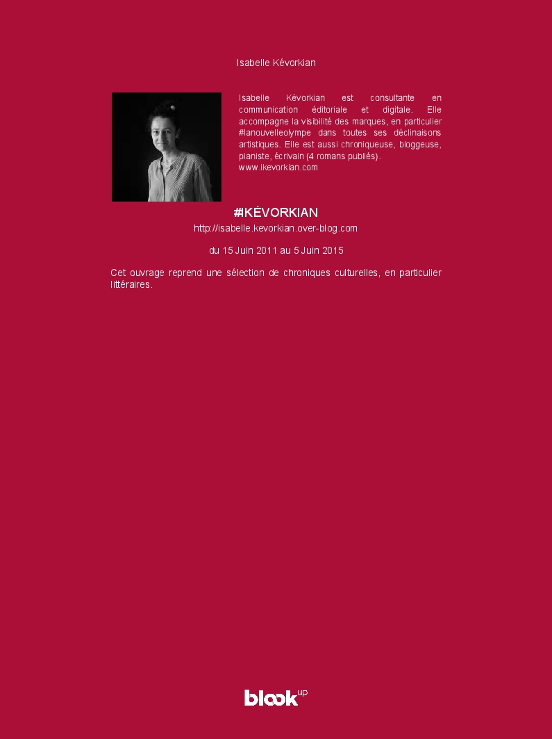 Isabelle Kévorkian made the blook of their their blog Overblog ! Support their creativity by buying their blook or create your own now on BlookUp!