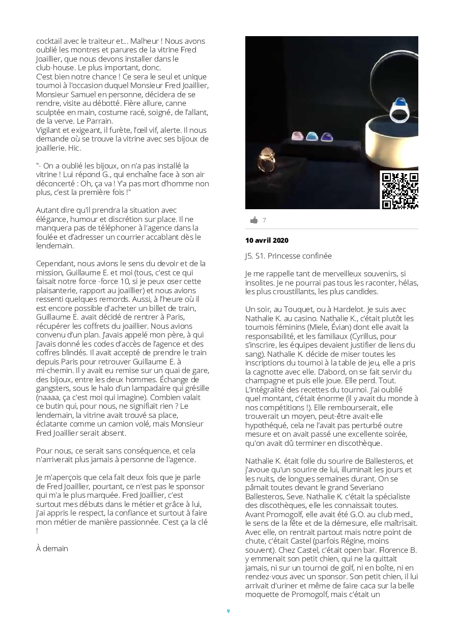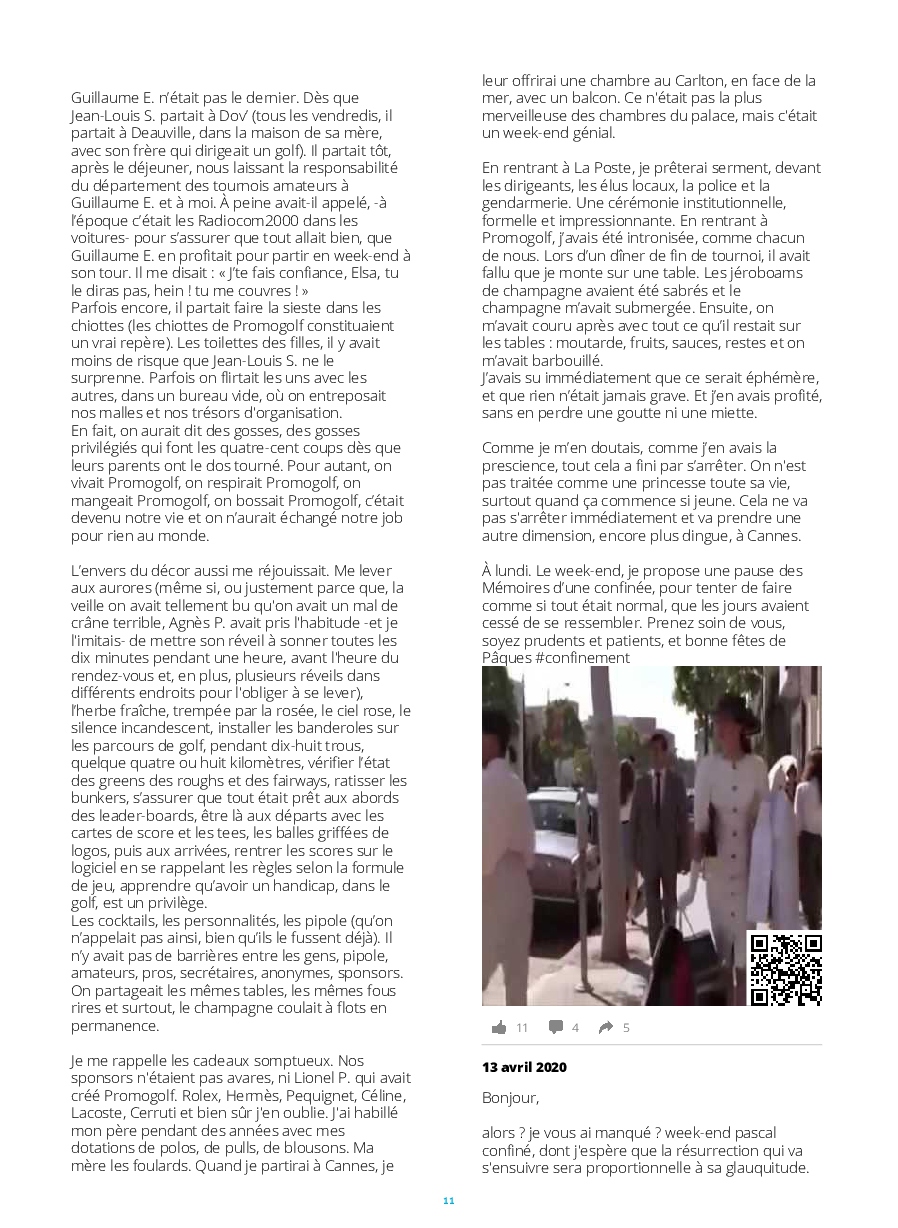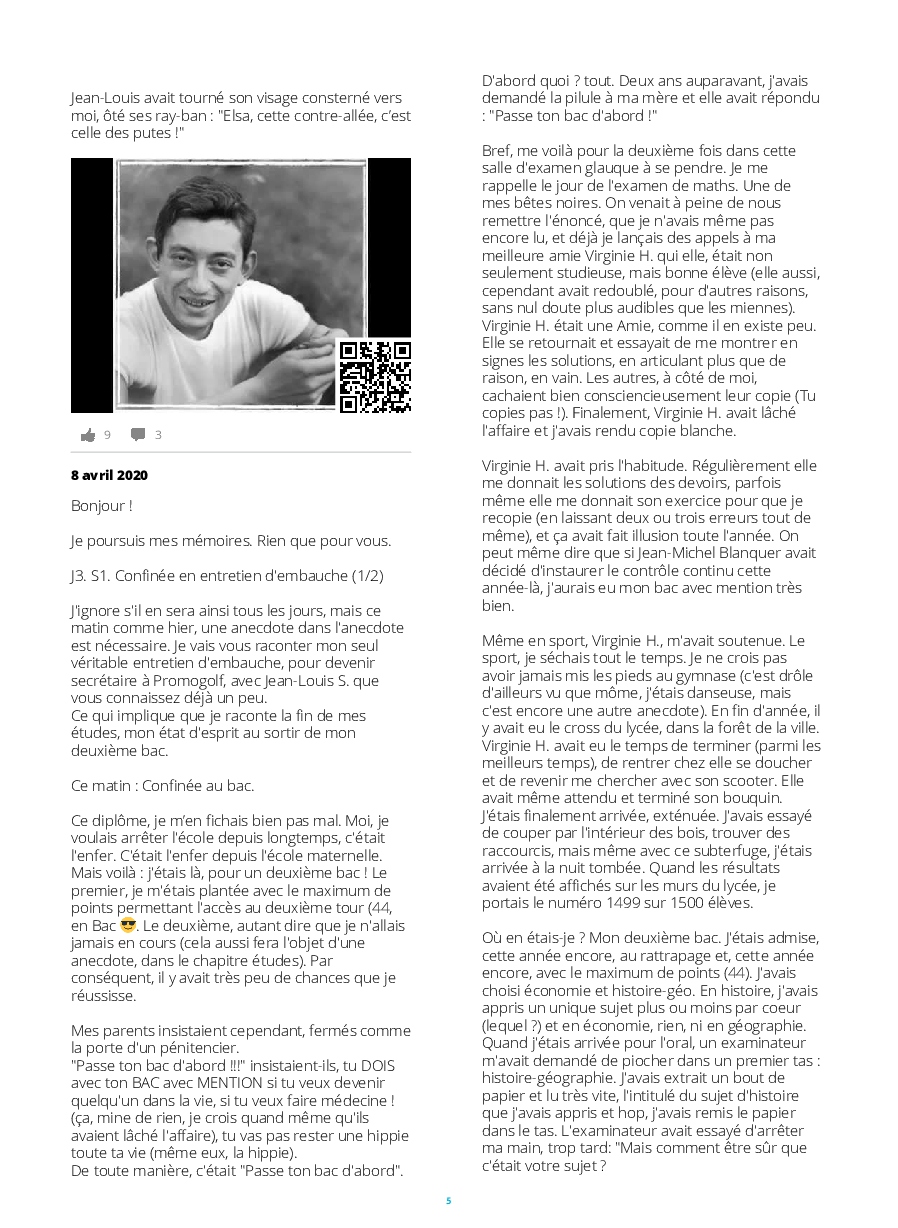 Ce feuilleton Facebook débute le 6 avril ; il dure 12 semaines à raison de un billet par jour, du lundi au vendredi.