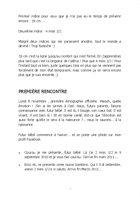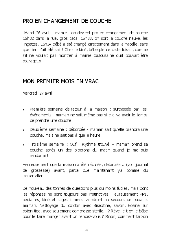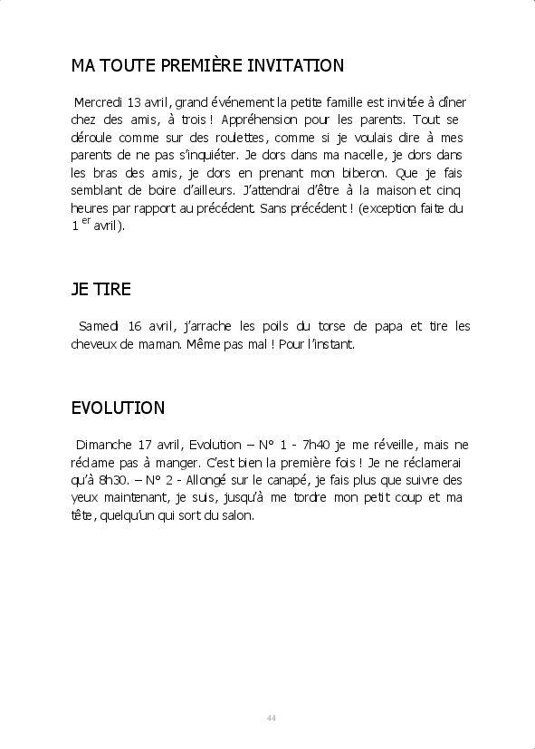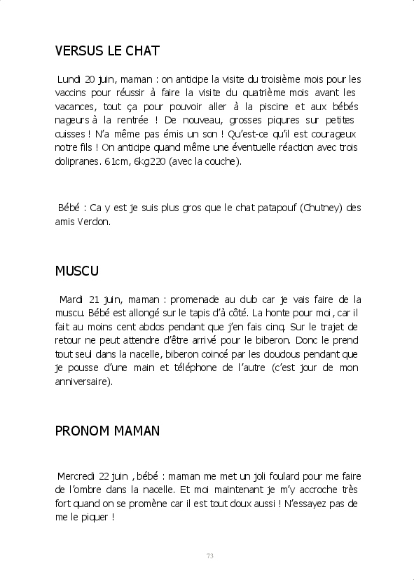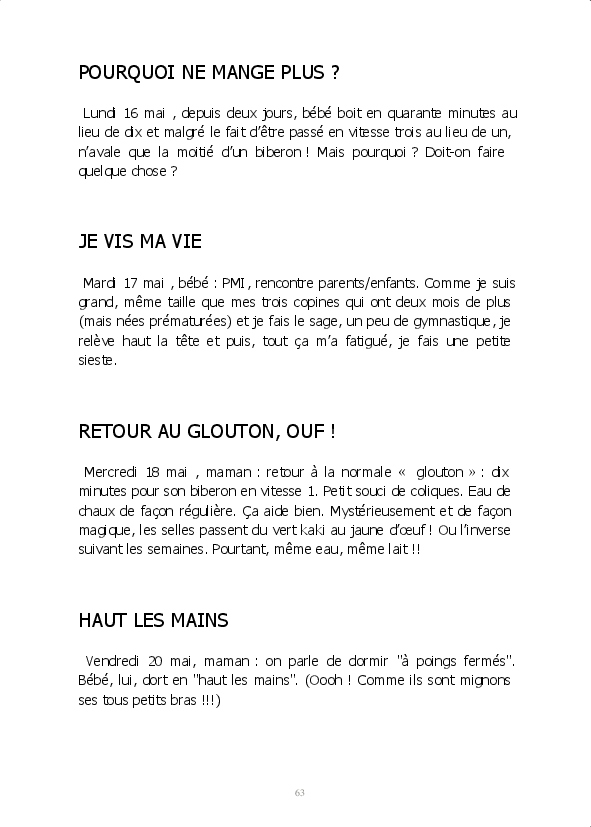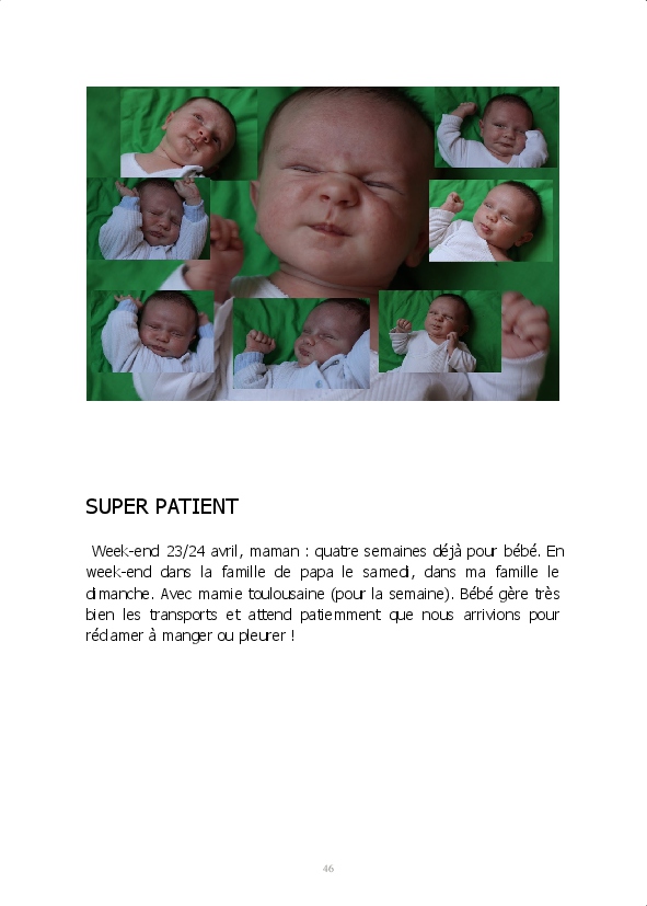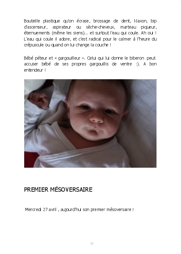 Génération, éclosion, envol pour une grossesse, naissance et première année.