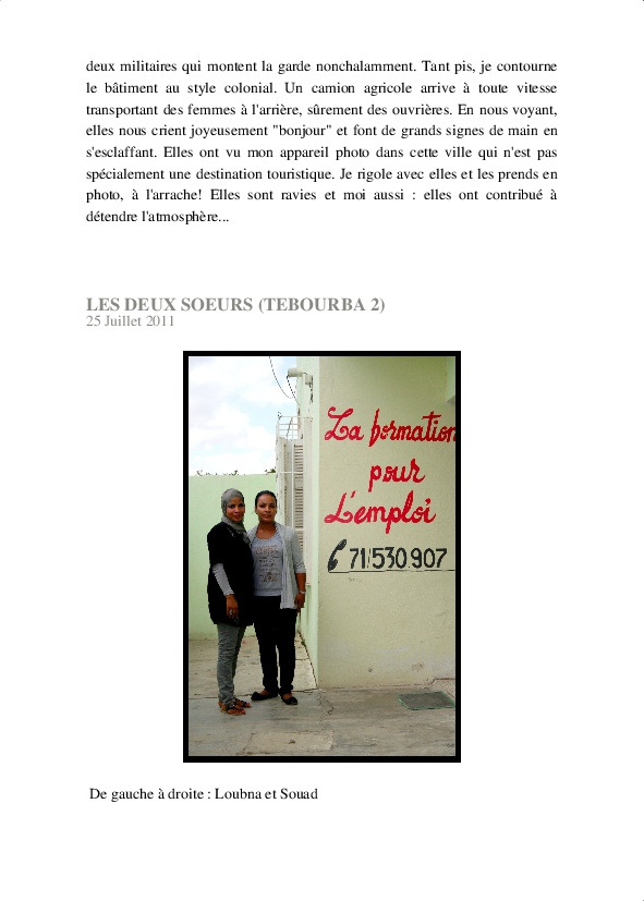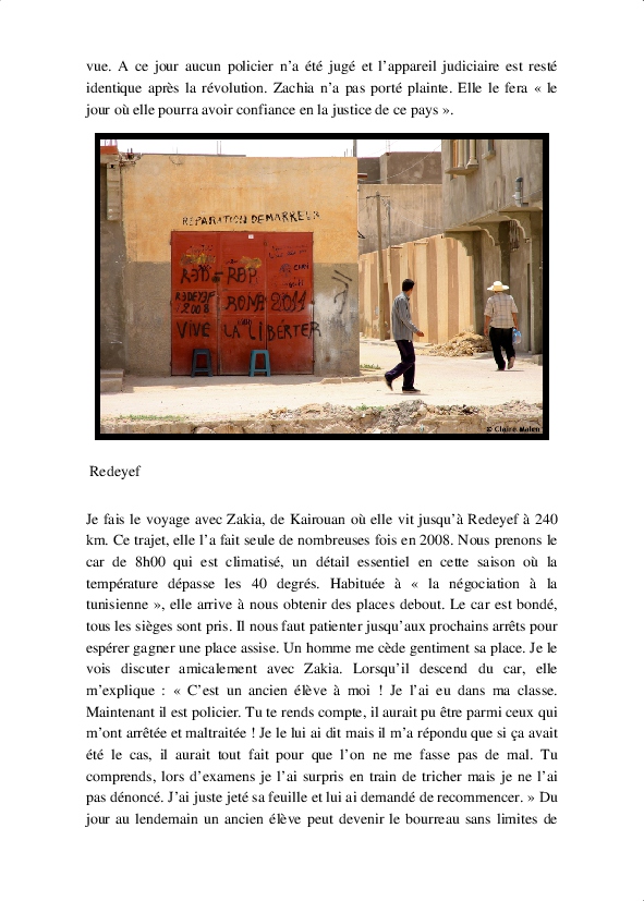 La Révolution tunisienne a eu un immense impact dans le monde. Les grands médias ont couvert les événements, notamment les plus spectaculaires ou les plus violents... Mais quel est le quotidien de celles et ceux qui ont participé activement à la révolution et qui continuent la lutte chaque jour à l’ombre des médias ? C‘est ce que je tente d’appréhender à travers mon travail, en tant que photographe, en tant que journaliste, mais aussi en tant que femme en privilégiant les rencontres avec celles qui ont activement agi durant cette révolution et ne laisseront pas piétiner leurs droits.