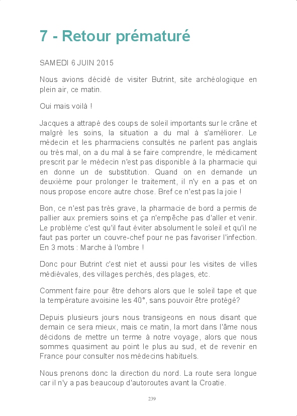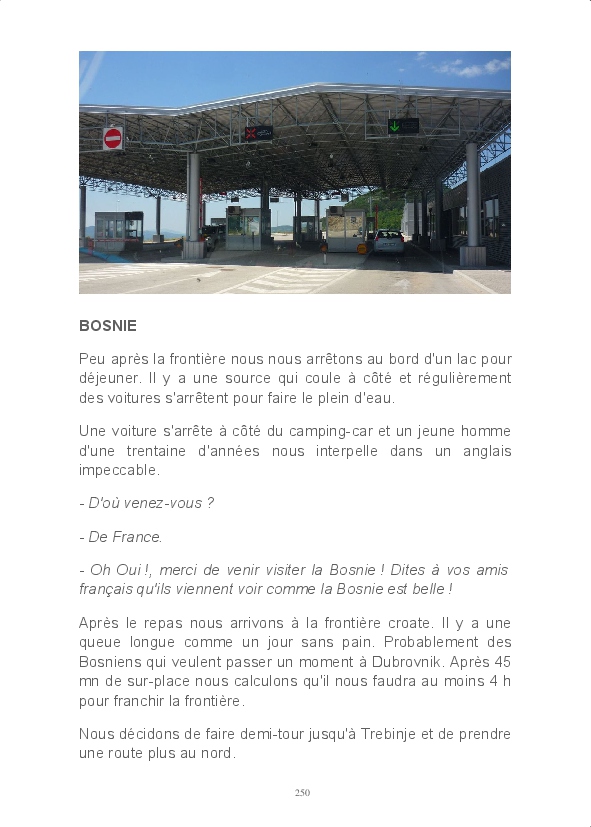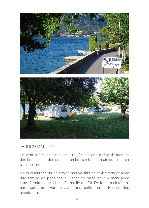 Nouvelle direction pour cette année puisque nous allons vers le sud, profiter des rivages adriatiques de la Croatie à l'Albanie. Nous en avons profité pour entrer dans les terres au Monténégro et mettre un pied en Bosnie. Partis le 4 mai nous avions prévu un retour début juillet, mais des problèmes mineurs de santé nous ont fait rentrer plus tôt. Nous n'avons donc pas visité la Macédoine et la Serbie, ce sera pour une autre fois.