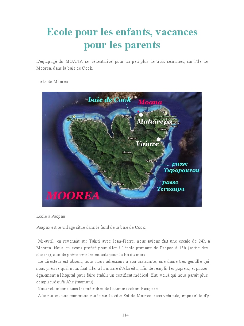 MOOREA : école pour les enfants, vacances pour les parents (mai 2015)