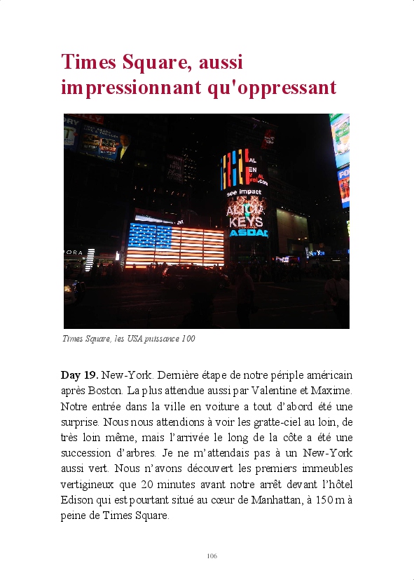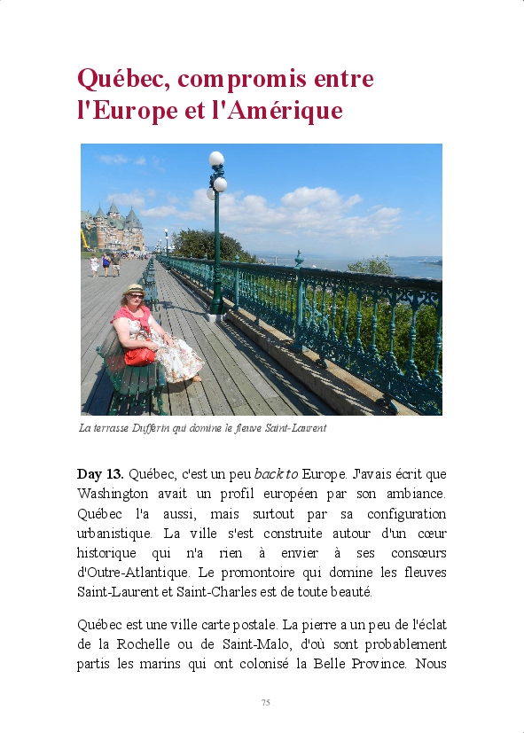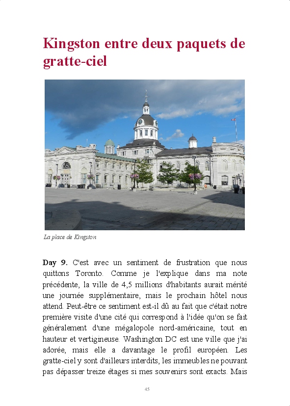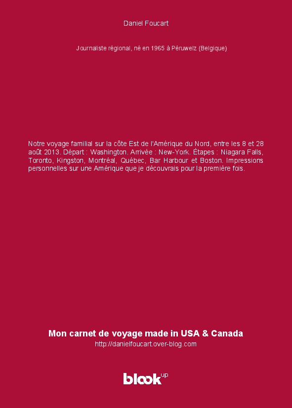 Notre voyage familial sur la côte Est de l'Amérique du Nord, entre les 8 et 28 août 2013. Départ : Washington. Arrivée : New-York. Étapes : Niagara Falls, Toronto, Kingston, Montréal, Québec, Bar Harbour et Boston. Impressions personnelles sur une Amérique que je découvrais pour la première fois.