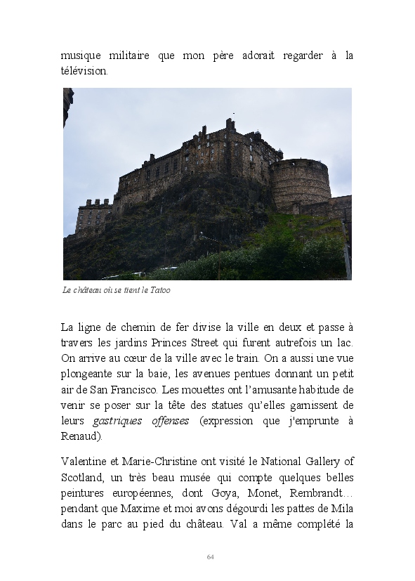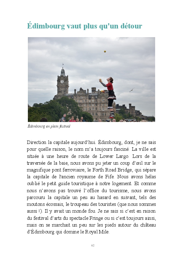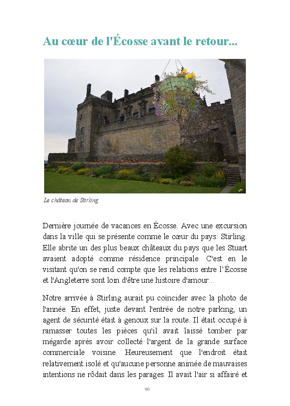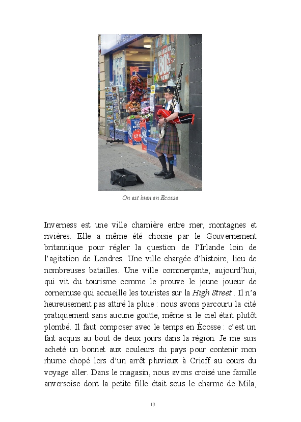 C'est le condensé de notre séjour en Écosse en août 2015. Nous avons parcouru en voiture les routes des Highlands la première semaine et celles de la Fife Coast la seconde. Nos principaux arrêts : Inverness, l'île de Skye, Aviemore, Elgin, le loch Ness, Édimbourg, Crail, Falkland, Saint-Andrews, etc. Que du bonheur, même sous une douche typiquement écossaise...